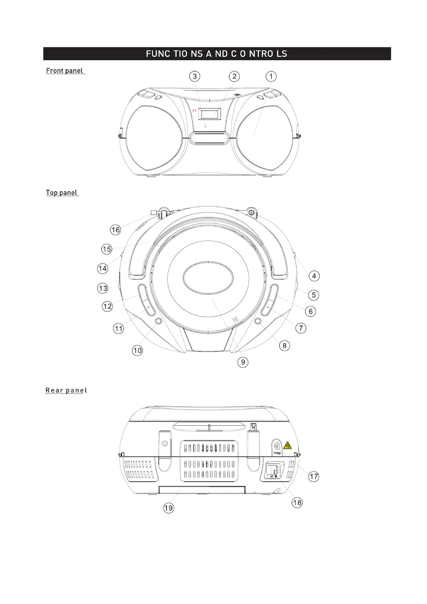 FUNC TIO NS A ND C O NTRO LS Front panel Top panel Rear panelREAR PANEL
