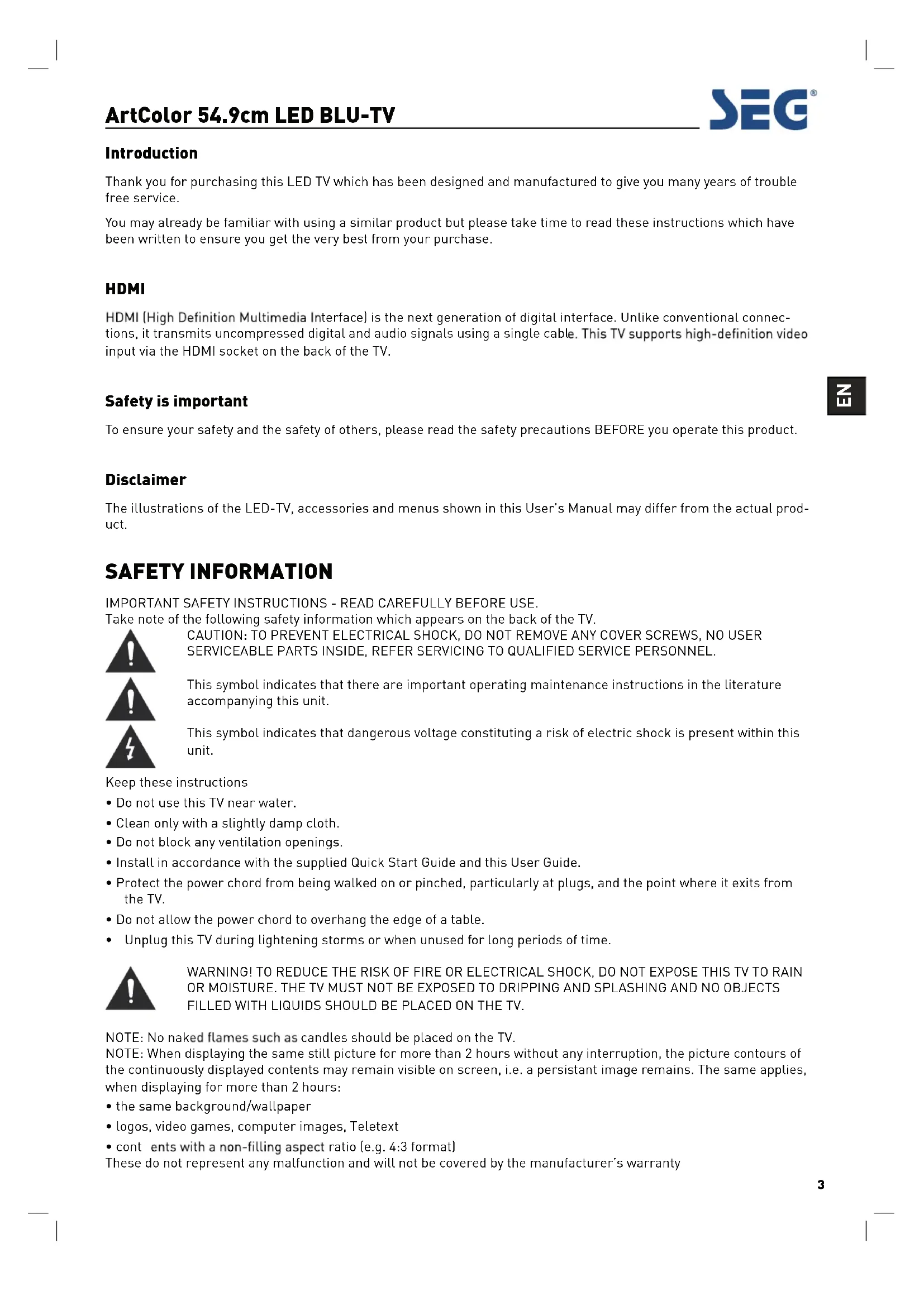Thank you for purchasing this LED TV which has been designed and manufactured to give you many years of trouble free service.