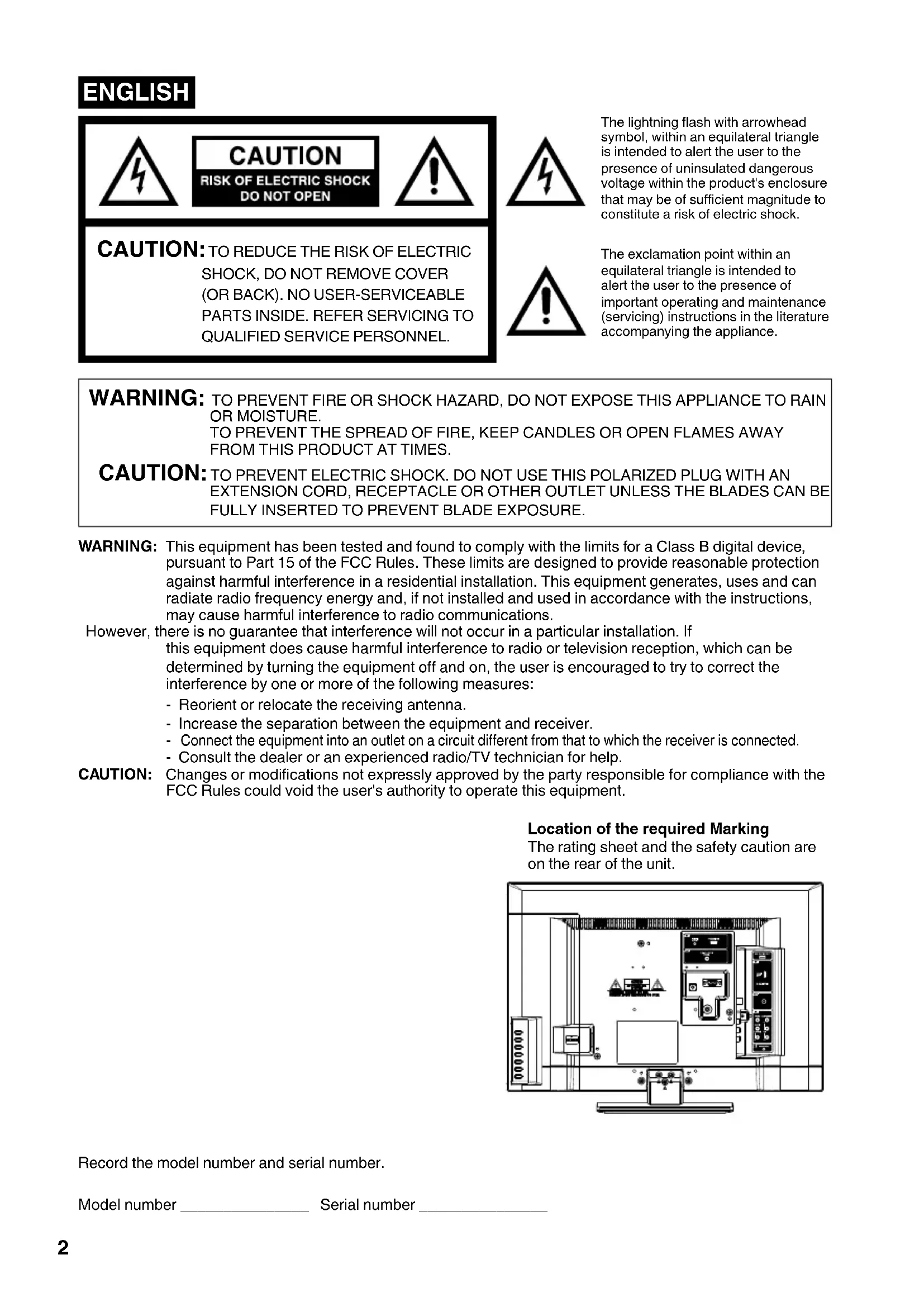 The rating sheet and the safety caution are on the rear of the unit.