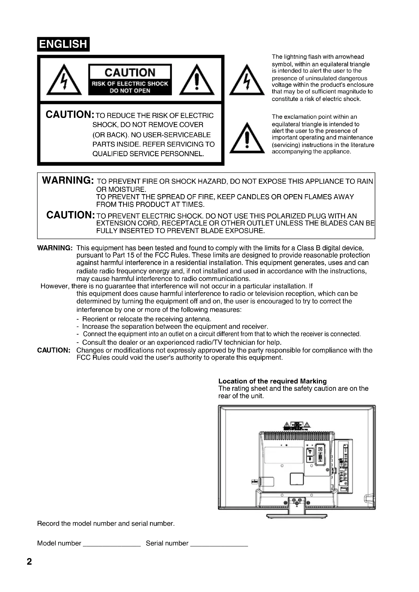 WARNING: TO PREVENT FIRE OR SHOCK HAZARD, DO NOT EXPOSE THIS APPLIANCE TO RAIN OR MOISTURE. TO PREVENT THE SPREAD OF FIRE, KEEP CANDLES OR OPEN FLAMES AWAY FROM THIS PRODUCT AT TIMES.