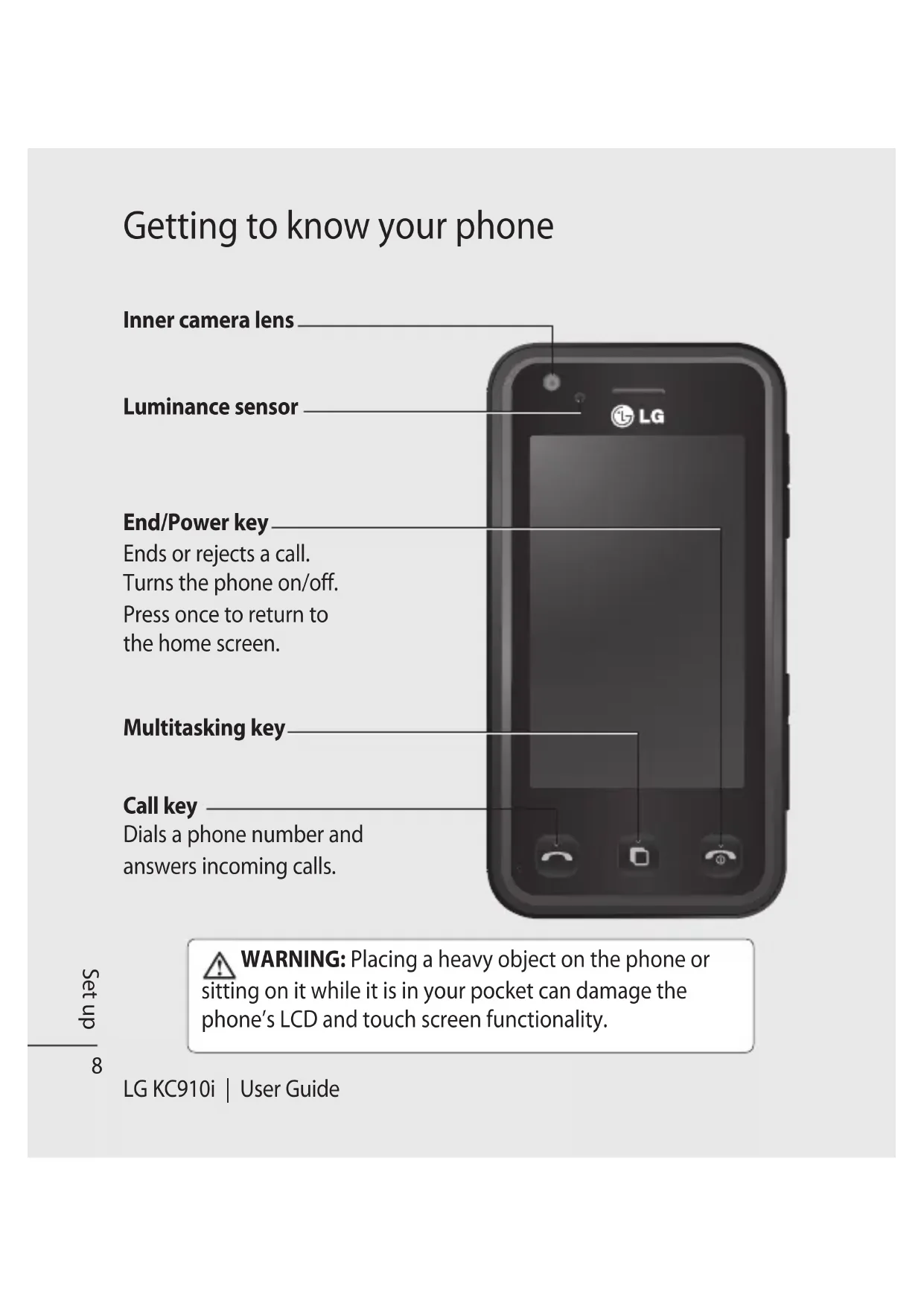 sitting on it while it is in your pocket can damage the phone’s LCD and touch screen functionality. Set up Luminance sensor9