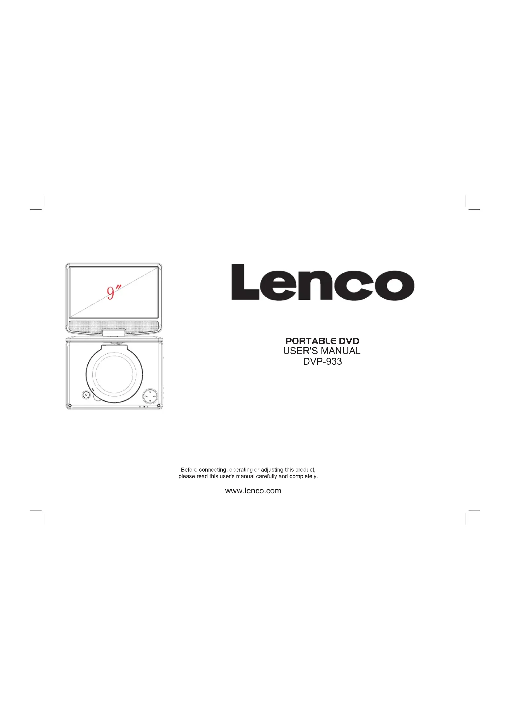 Before connecting, operating or adjusting this product, please read this user's manual carefully and completely. PORTABLE DVD USER'S MANUAL DVP-933 www.lenco.comWarning: To reduce the risk of electric shock, do not remove the cover or back. There are no user-serviceable parts inside. Refer servicing to qualified personnel.