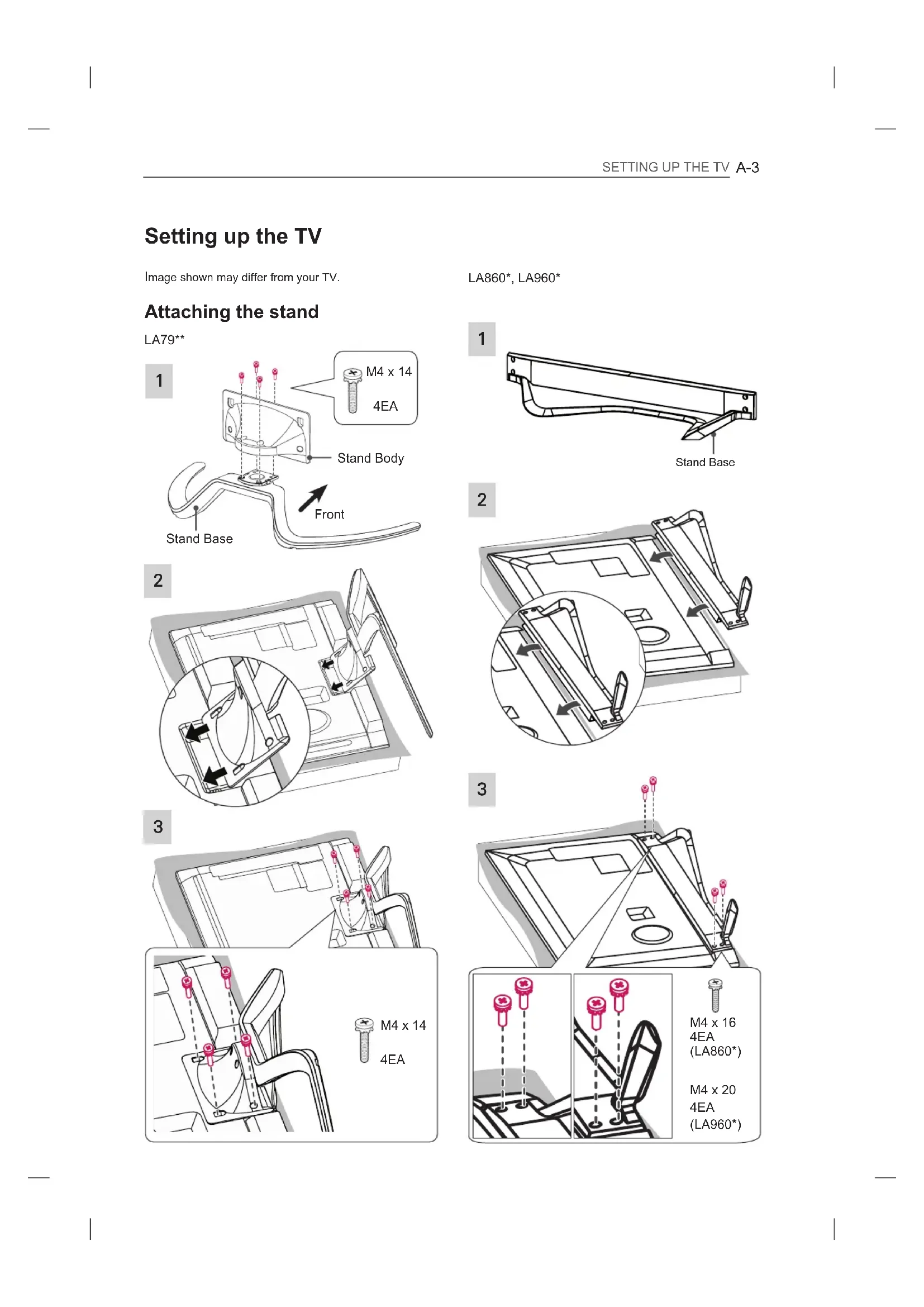 Setting up the TV Image shown may differ from your TV. Attaching the stand LA79**