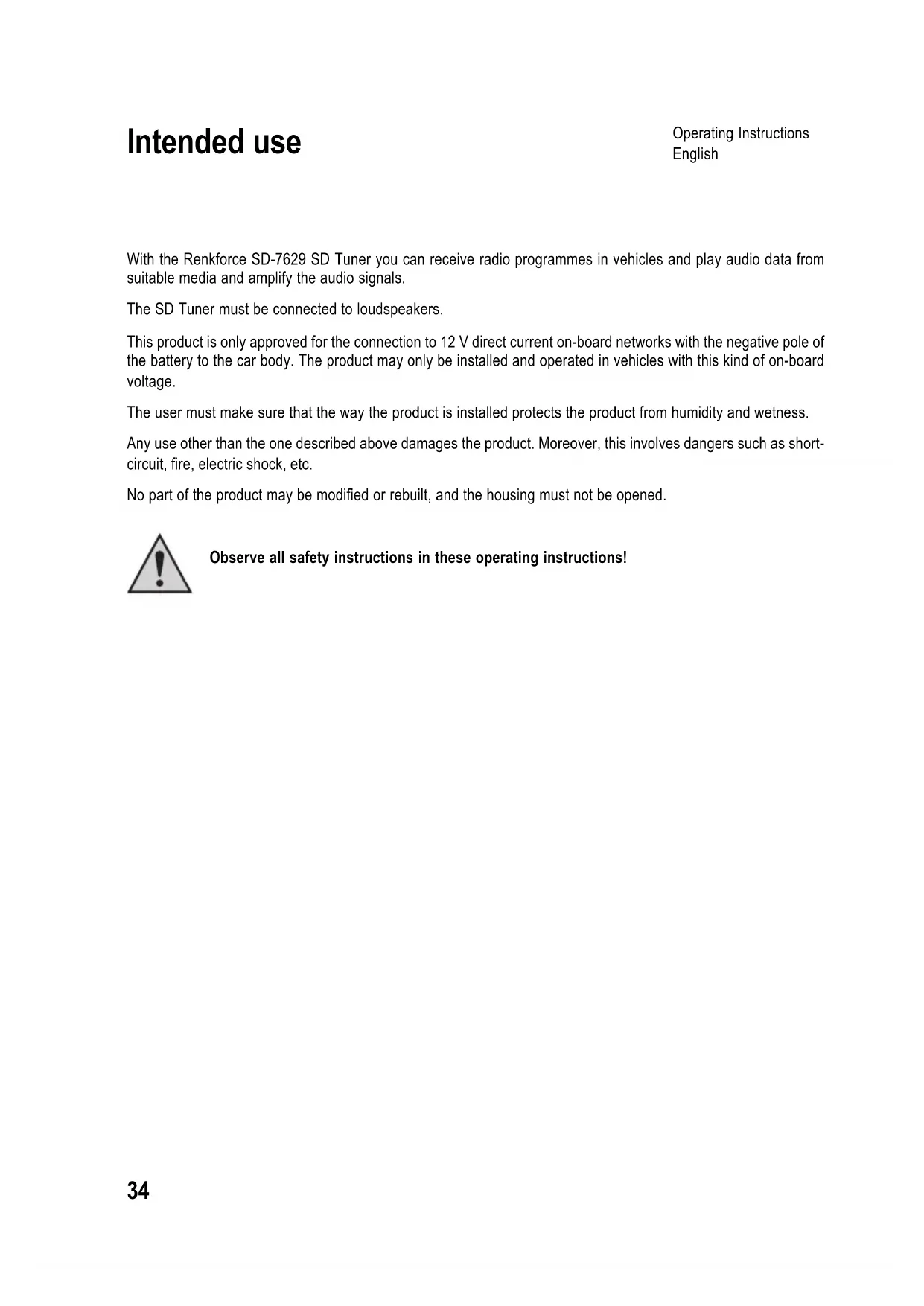 With the Renkforce SD-7629 SD tuner, you have purchased a product that is equipped with state-of-the-art technology and safe to operate.