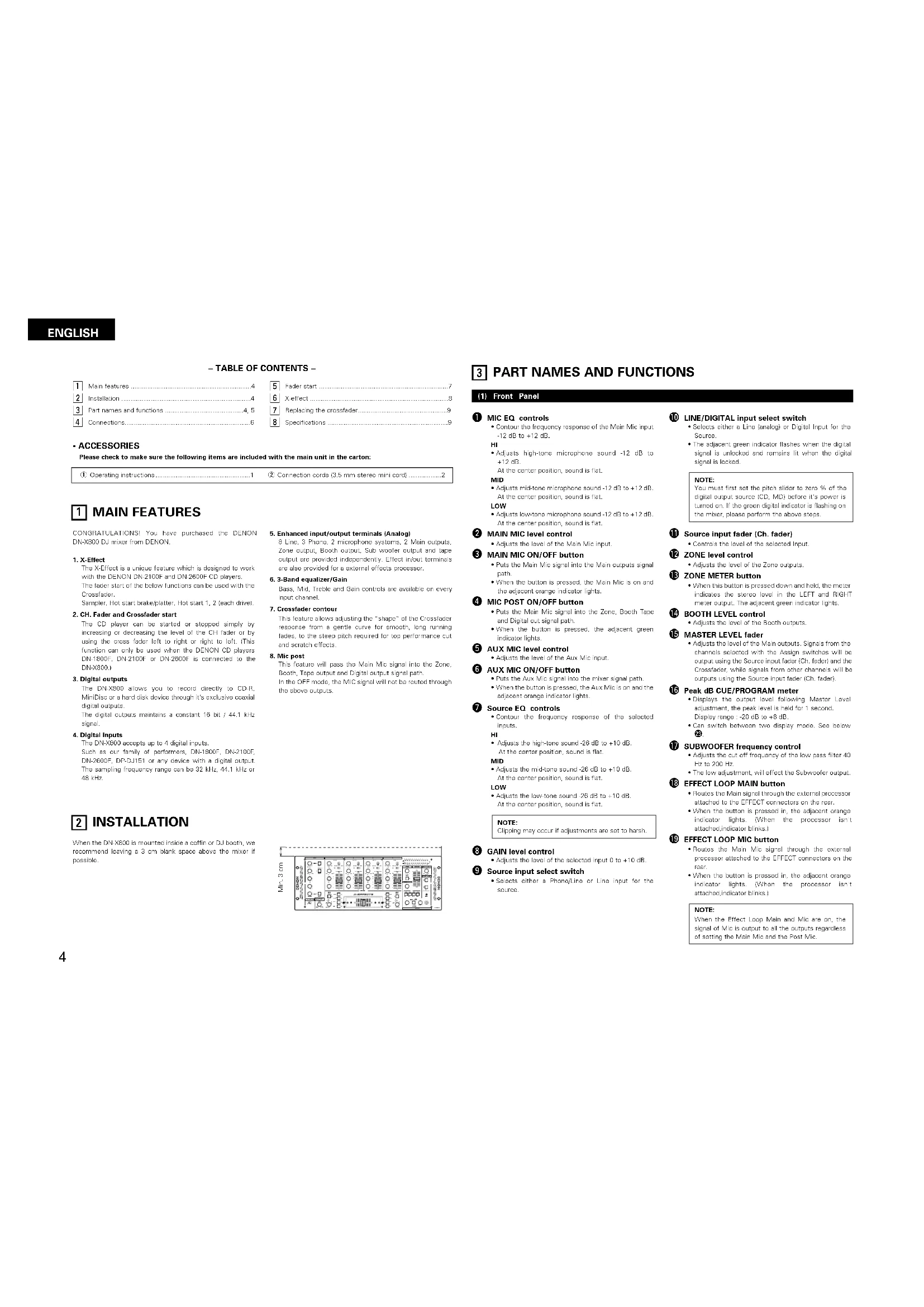 CONGRATULATIONS! You have purchased the DENON DN-X800 DJ-mixer from DENON.