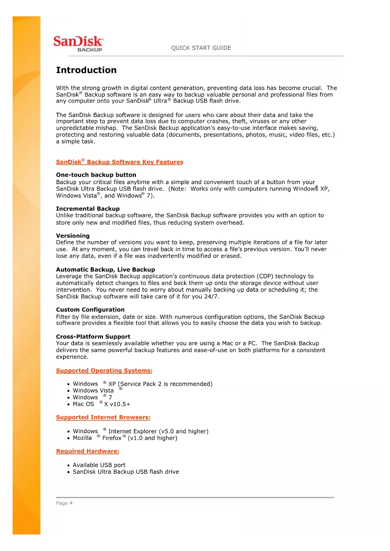 (v1.0 and higher) Required Hardware: Available USB port SanDisk Ultra Backup USB flash driveQUICK START GUIDE