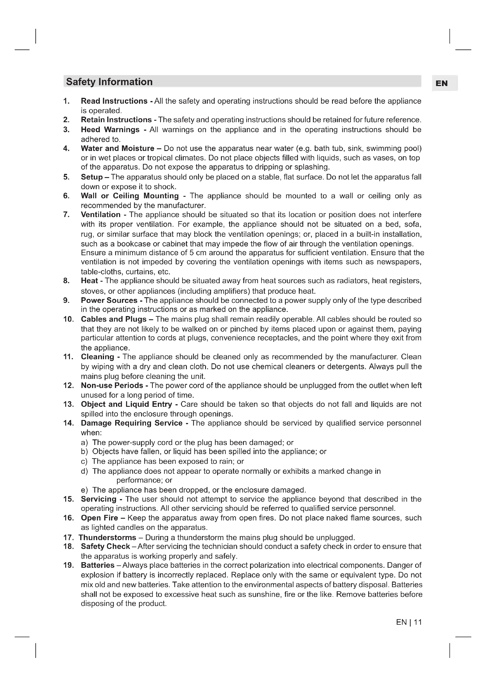 - Retain Instructions - The safety and operating instructions should be retained for future reference.