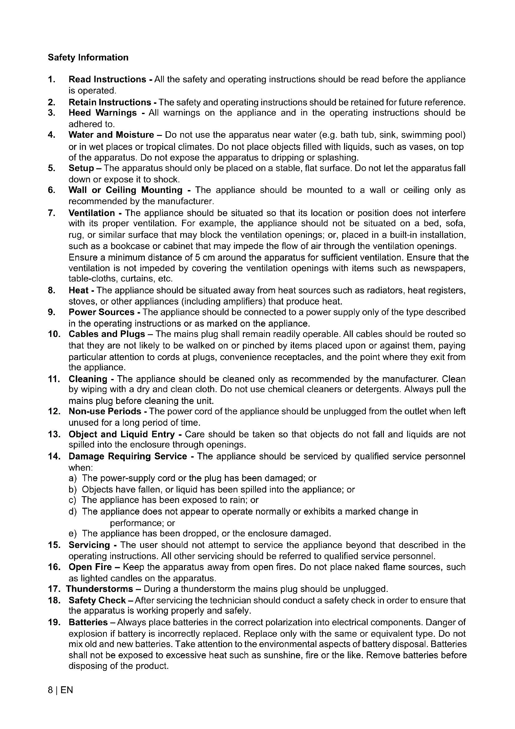 2. Retain Instructions - The safety and operating instructions should be retained for future reference.