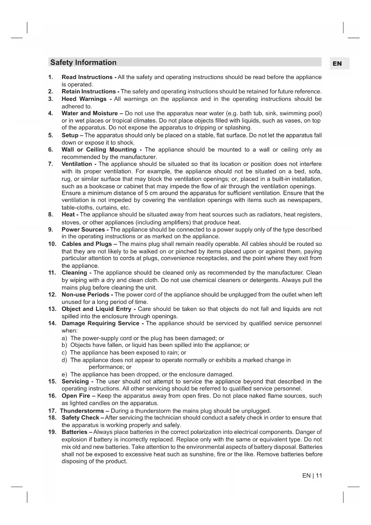 17. Thunderstorms – During a thunderstorm the mains plug should be unplugged.