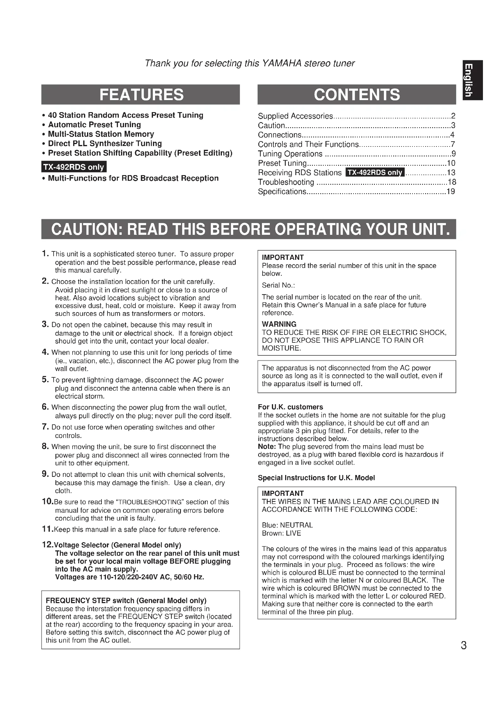 USER MANUAL TX492RDS YAMAHA