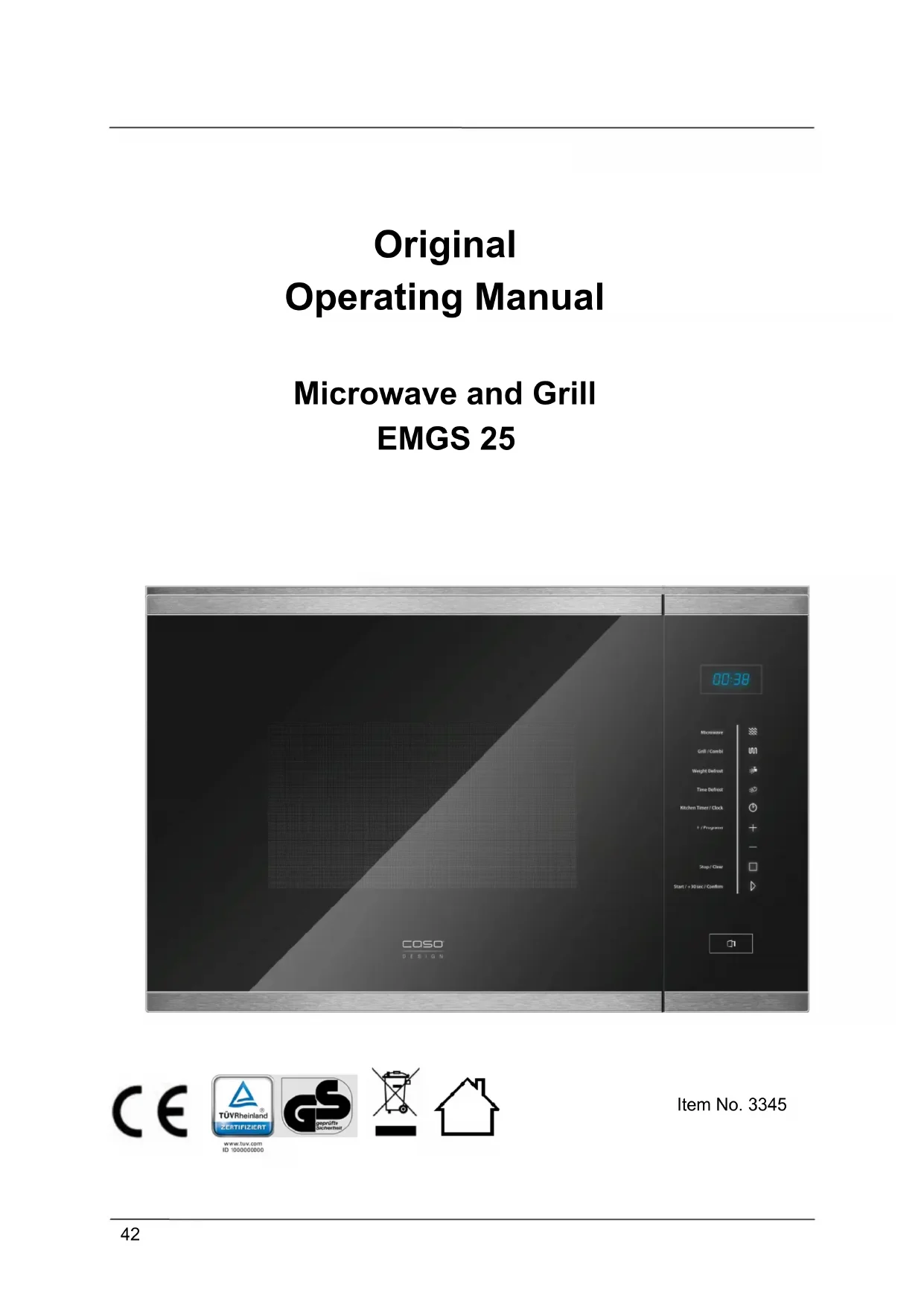 Download the instructions for your Four à micro-ondes in PDF format for free! Find your manual EMGS 25 - CASO and take your electronic device back in hand. On this page are published all the documents necessary for the use of your device. EMGS 25 by CASO.