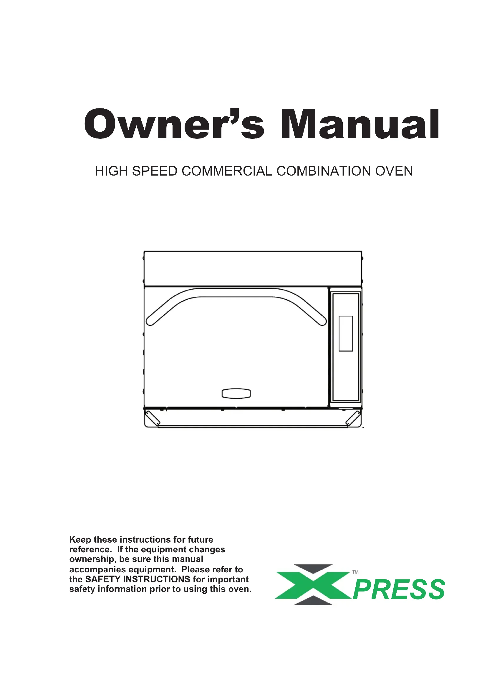 accompanies equipment. Please refer to the SAFETY INSTRUCTIONS for important safety information prior to using this oven.