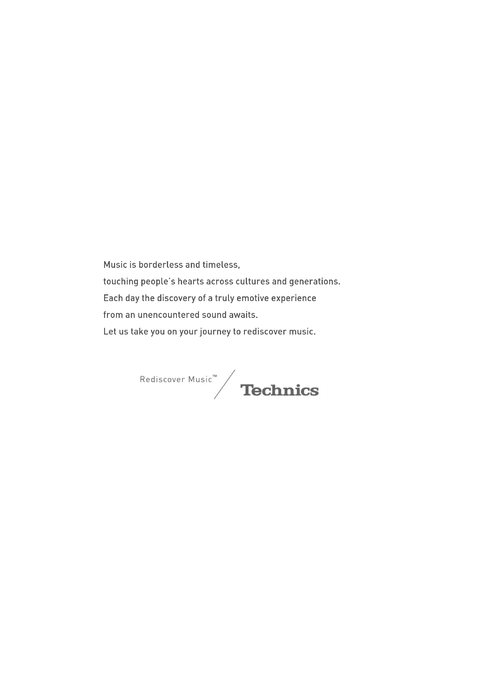 Operating Instructions Bedienungsanleitung Mode d’emploi Istruzioni per l’uso Gebruiksaanwijzing Network Audio Player Netzwerkaudio-Player Lecteur réseau Network Audio Player Netwerk Audio Speler ST-C700D ST-C700DE-TQBM0007.book 1 ページ 2016年10月26日 水曜日 午後1時17分ST-C700DE-TQBM0007.book 2 ページ 2016年10月26日 水曜日 午後1時17分Music is borderless and timeless, touching people’s hearts across cultures and generations. Each day the discovery of a truly emotive experience from an unencountered sound awaits. Let us take you on your journey to rediscover music. ST-C700DE-TQBM0007.book 3 ページ 2016年10月26日 水曜日 午後1時17分4 Thank you for purchasing this product. Please read these instructions carefully before using this product, and save this manual for future use. ∫ Features of this unit This unit offers the following features: Digital Noise Isolation Architecture Since most digital content storage media are intended for use with PCs, they are not designed with consideration for low noise, which is critical to pure audio reproduction. To overcome this challenge, this unit employs a thorough measure against jitter and outstanding noise blocking technology for each of its interfaces, delivering clear sound. Virtual Battery Operation Virtual Battery Operation prevents power supply noise, a factor that causes “turbidity” in sound, from mixing into the audio signal. The result is an improvement in sound localisation performance and spatial expression. Ultra Low Distortion Oversampling Digital Filter High-precision oversampling eliminates distortion and enhances the sound quality of music sources, thus reproducing sound rich with spatial expression. ∫ Recommended devices We recommend using Technics devices (optional) for superior audio quality. Sales and Support Information Customer Communications Centre ≥For customers within the UK: 0333 222 8777 ≥For customers within Ireland: 01 447 5229 ≥Monday–Friday 9:00 am – 5:00 pm, (Excluding public holidays). ≥For further support on your product, please visit our website: www.technics.com/uk/ Product name Model number Speaker System SB-C700 Compact Disc Player SL-C700 Stereo Integrated Amplifier SU-C700 (4) ST-C700DE-TQBM0007.book 4 ページ 2016年10月26日 水曜日 午後1時17分5 English Safety precautions Unit ≥ To reduce the risk of fire, electric shock or product damage,– Do not expose this unit to rain, moisture, dripping or splashing.– Do not place objects filled with liquids, such as vases, on this unit.– Use only the recommended accessories.– Do not remove covers. – Do not repair this unit by yourself. Refer servicing to qualified service personnel.– Do not let metal objects fall inside this unit.– Do not place heavy items on this unit. AC mains lead ≥ To reduce the risk of fire, electric shock or product damage,– Ensure that the power supply voltage corresponds to the voltage printed on this unit.– Insert the mains plug fully into the socket outlet.– Do not pull, bend, or place heavy items on the lead.– Do not handle the plug with wet hands.– Hold onto the mains plug body when disconnecting the plug.– Do not use a damaged mains plug or socket outlet.≥ The mains plug is the disconnecting device. Install this unit so that the mains plug can be unplugged from the socket outlet immediately. Unit ≥ Do not place sources of naked flames, such as lighted candles, on this unit. ≥ This unit may receive radio interference caused by mobile telephones during use. If such interference occurs, please increase separation between this unit and the mobile telephone.≥ This unit is intended for use in moderate and tropical climates. Placement ≥ Place this unit on an even surface.≥ To reduce the risk of fire, electric shock or product damage,– Do not install or place this unit in a bookcase, built-in cabinet or in another confined space. Ensure this unit is well ventilated.– Do not obstruct this unit’s ventilation openings with newspapers, tablecloths, curtains, and similar items.– Do not expose this unit to direct sunlight, high temperatures, high humidity, and excessive vibration. ≥ Do not lift or carry this unit by holding any of its levers. Doing so may cause this unit to fall, resulting in personal injury or malfunction of this unit. Battery ≥ Danger of explosion if battery is incorrectly replaced. Replace only with the type recommended by the manufacturer. ≥ Mishandling of batteries can cause electrolyte leakage and may cause a fire.– Remove the battery if you do not intend to use the remote control for a long period of time. Store in a cool, dark place.– Do not heat or expose to flame.– Do not leave the battery(ies) in a car exposed to direct sunlight for a long period of time with doors and windows closed.– Do not take apart or short circuit.– Do not recharge alkaline or manganese batteries.– Do not use batteries if the covering has been peeled off.– Do not mix old and new batteries or different types at the same time. ≥ When disposing of the batteries, please contact your local authorities or dealer and ask for the correct method of disposal. (For the AC mains plug of three pins) For your safety, please read the following text carefully.This appliance is supplied with a moulded three pin mains plug for your safety and convenience.A 10-ampere fuse is fitted in this plug.Should the fuse need to be replaced please ensure that the replacement fuse has a rating of 10-ampere and that it is approved by ASTA or BSI to BS1362. Check for the ASTA mark Ï or the BSI mark Ì on the body of the fuse. If the plug contains a removable fuse cover you must ensure that it is refitted when the fuse is replaced.If you lose the fuse cover the plug must not be used until a replacement cover is obtained.A replacement fuse cover can be purchased from your local dealer. Before use Remove the connector cover. How to replace the fu