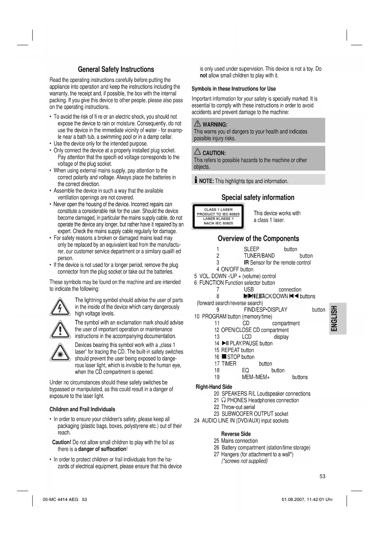 Download the instructions for your Hi-fi system in PDF format for free! Find your manual MC 4414 CDMP3 - AEG and take your electronic device back in hand. On this page are published all the documents necessary for the use of your device. MC 4414 CDMP3 by AEG.