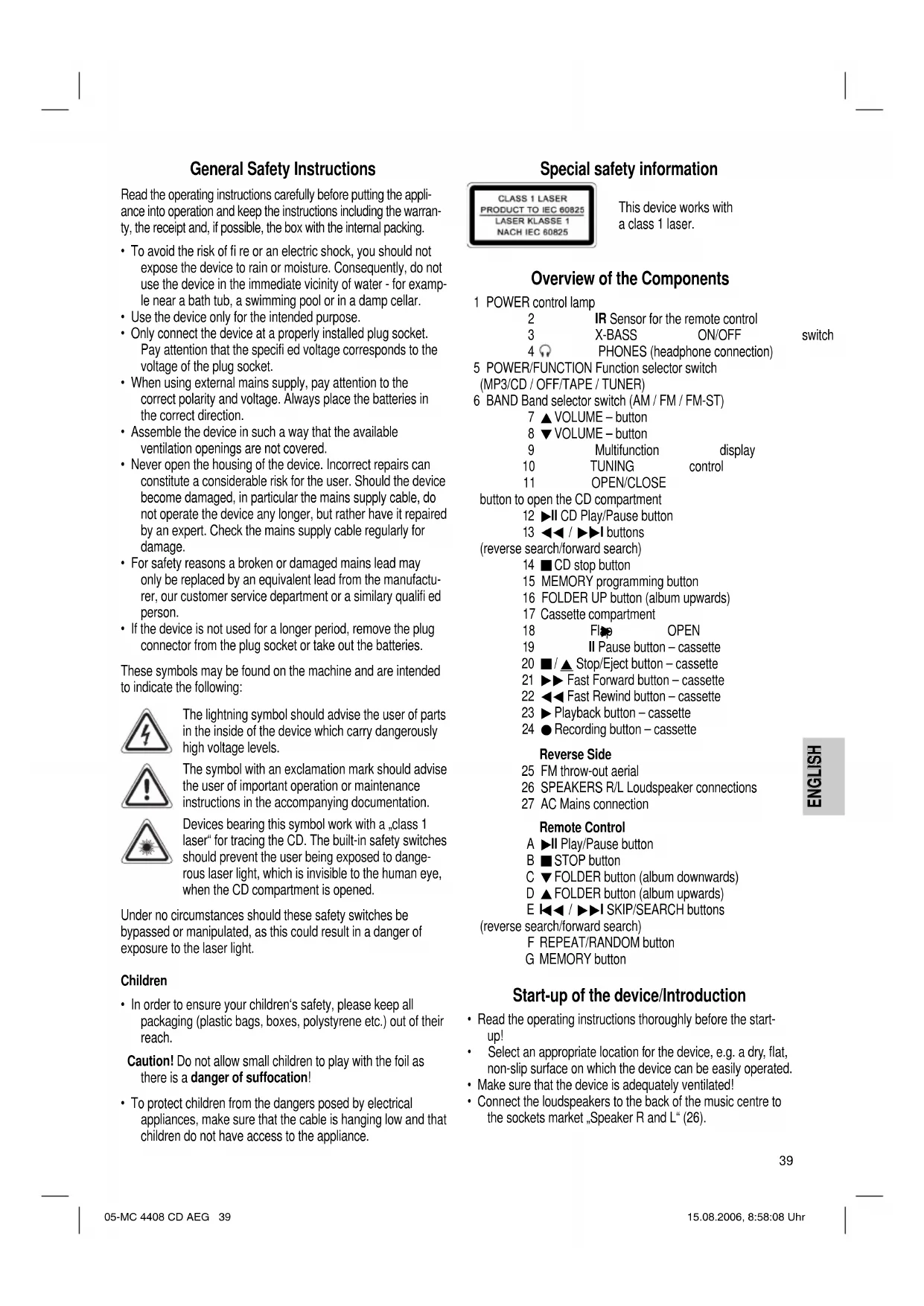 Download the instructions for your Hi-fi system in PDF format for free! Find your manual MC 4408 CDMP3 - AEG and take your electronic device back in hand. On this page are published all the documents necessary for the use of your device. MC 4408 CDMP3 by AEG.