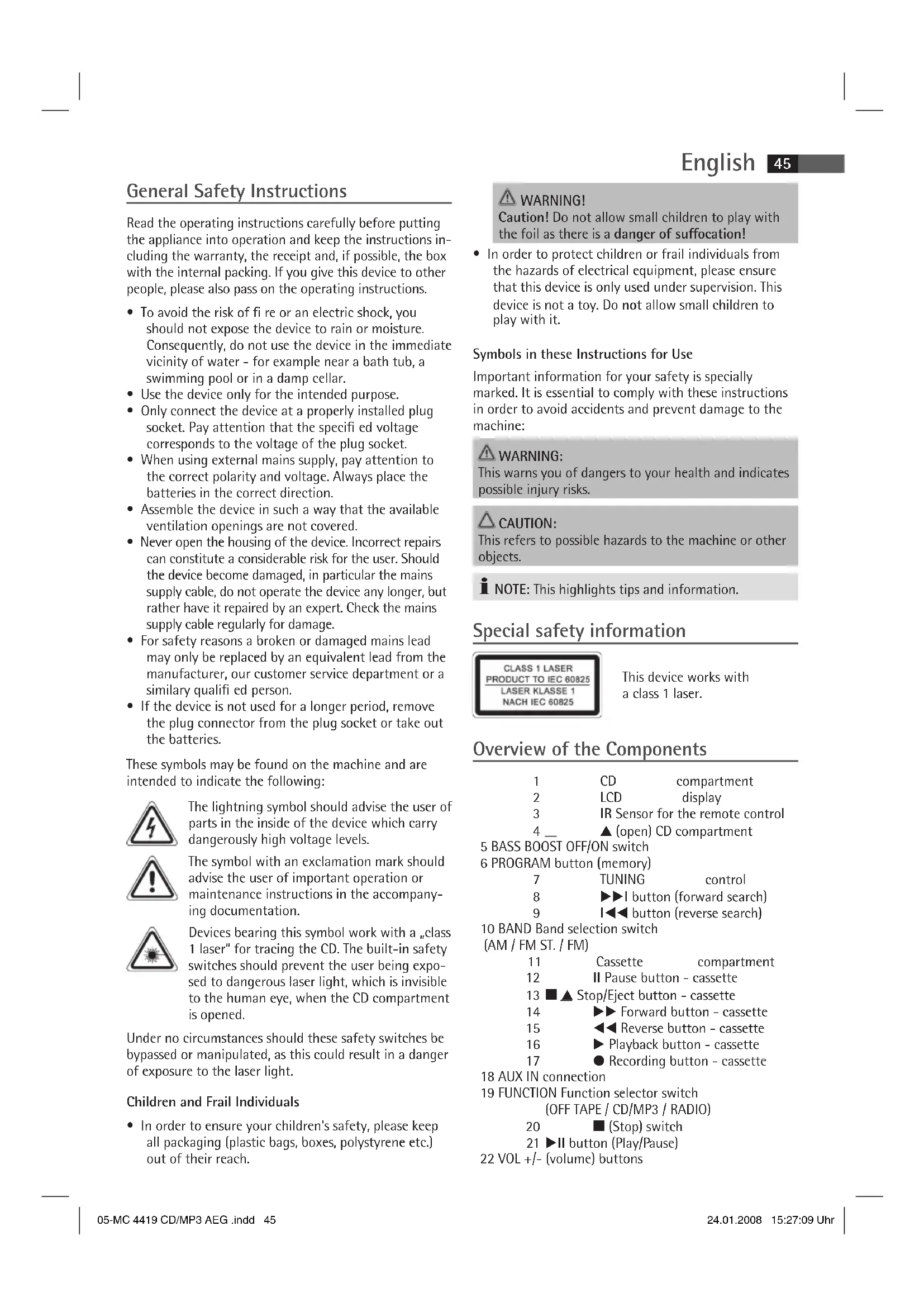 Download the instructions for your Hi-fi system in PDF format for free! Find your manual MC 4419 - AEG and take your electronic device back in hand. On this page are published all the documents necessary for the use of your device. MC 4419 by AEG.