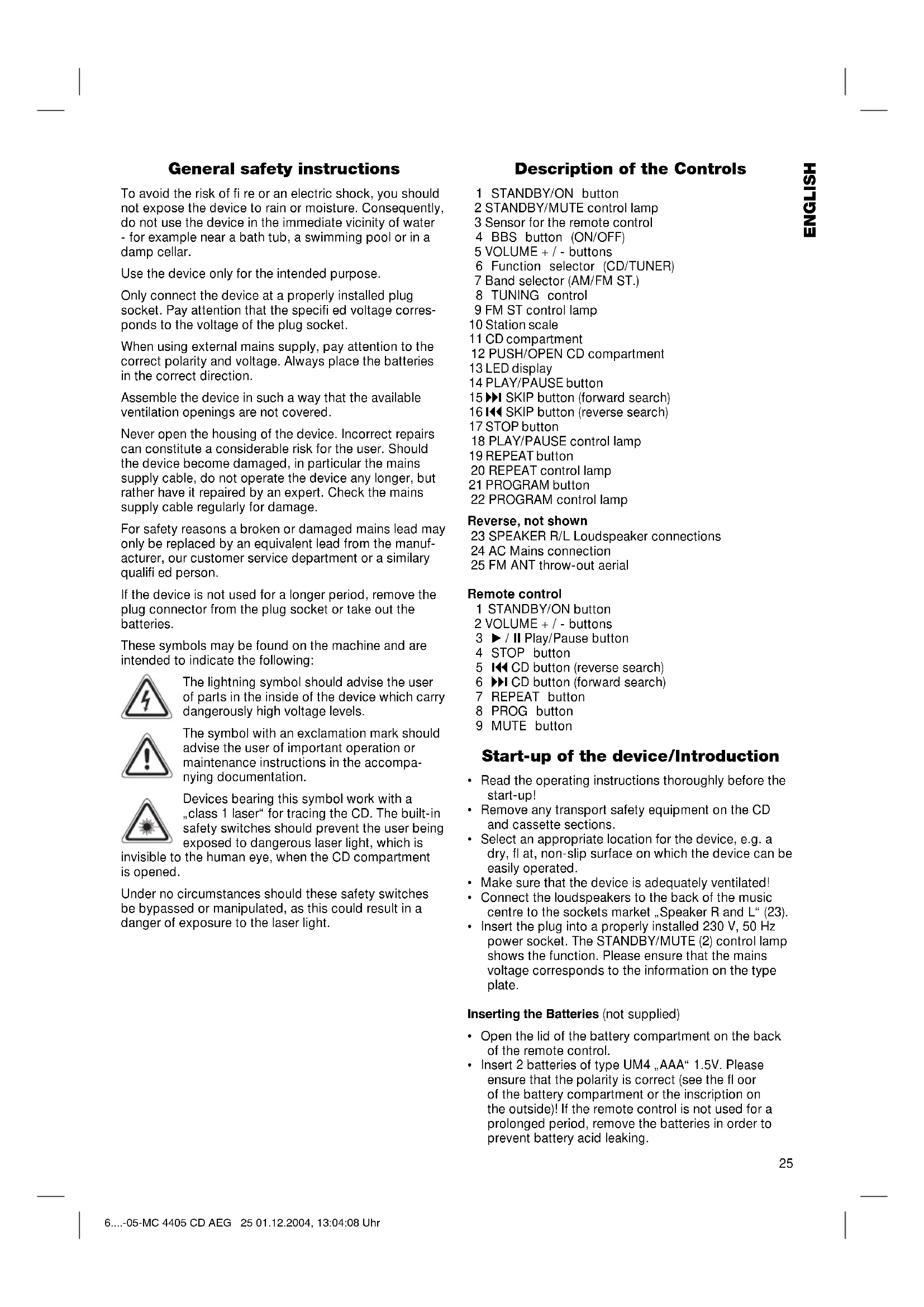 Download the instructions for your Hi-fi system in PDF format for free! Find your manual MC 4405 CD - AEG and take your electronic device back in hand. On this page are published all the documents necessary for the use of your device. MC 4405 CD by AEG.
