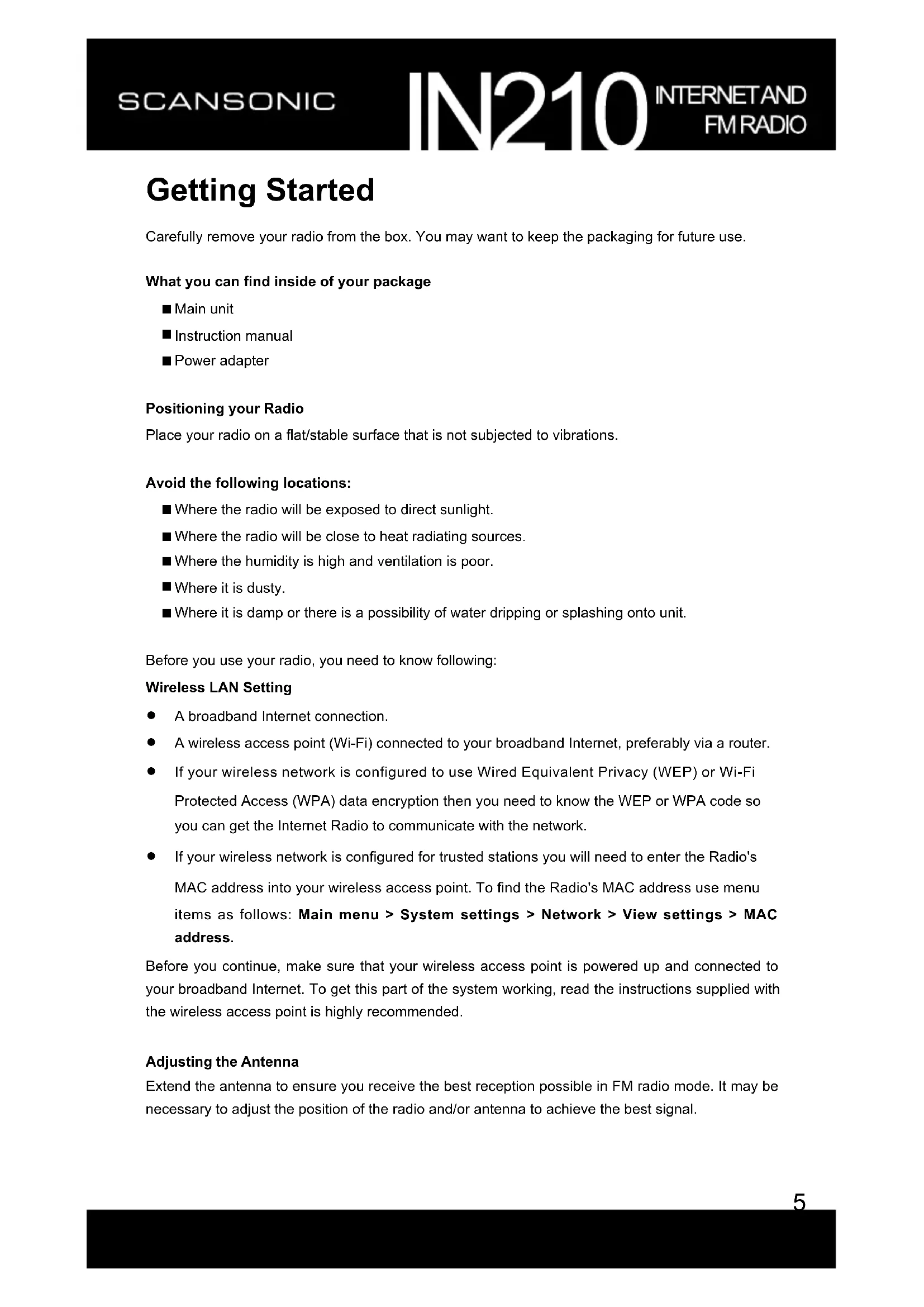 Carefully remove your radio from the box. You may want to keep the packaging for future use.