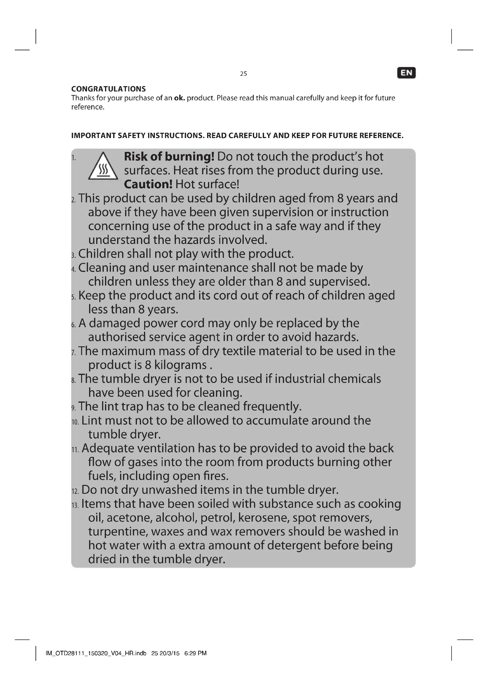 OTD 28111 - Tumble drier OK - Free user manual and instructions