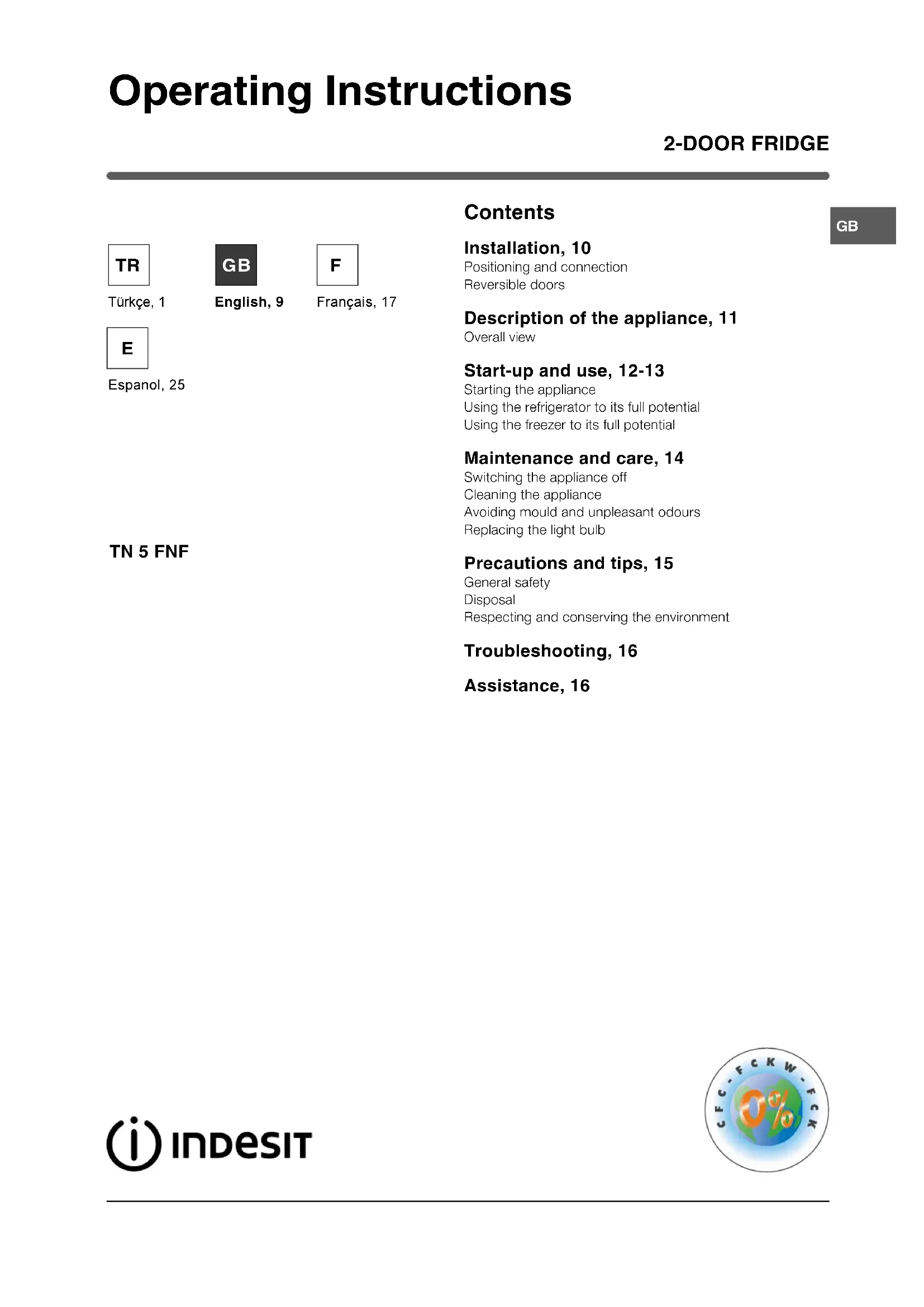 TN 5 FNF - Fridge INDESIT - Free user manual and instructions
