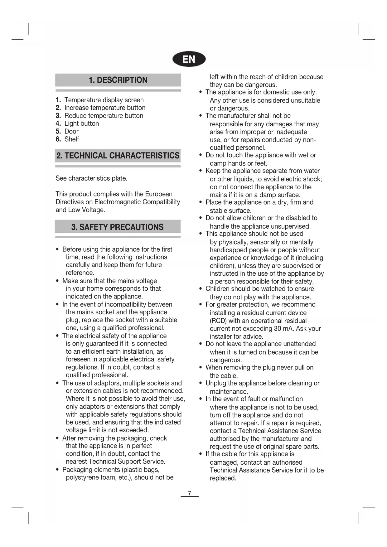 - The appliance is for domestic use only. Any other use is considered unsuitable or dangerous.