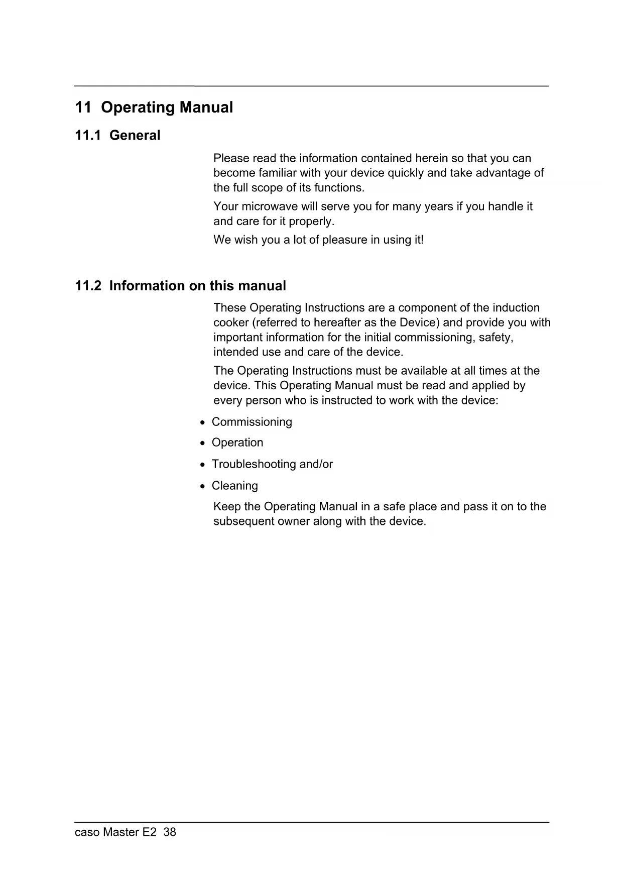 - Cleaning Keep the Operating Manual in a safe place and pass it on to the subsequent owner along with the device.caso Master E2 39