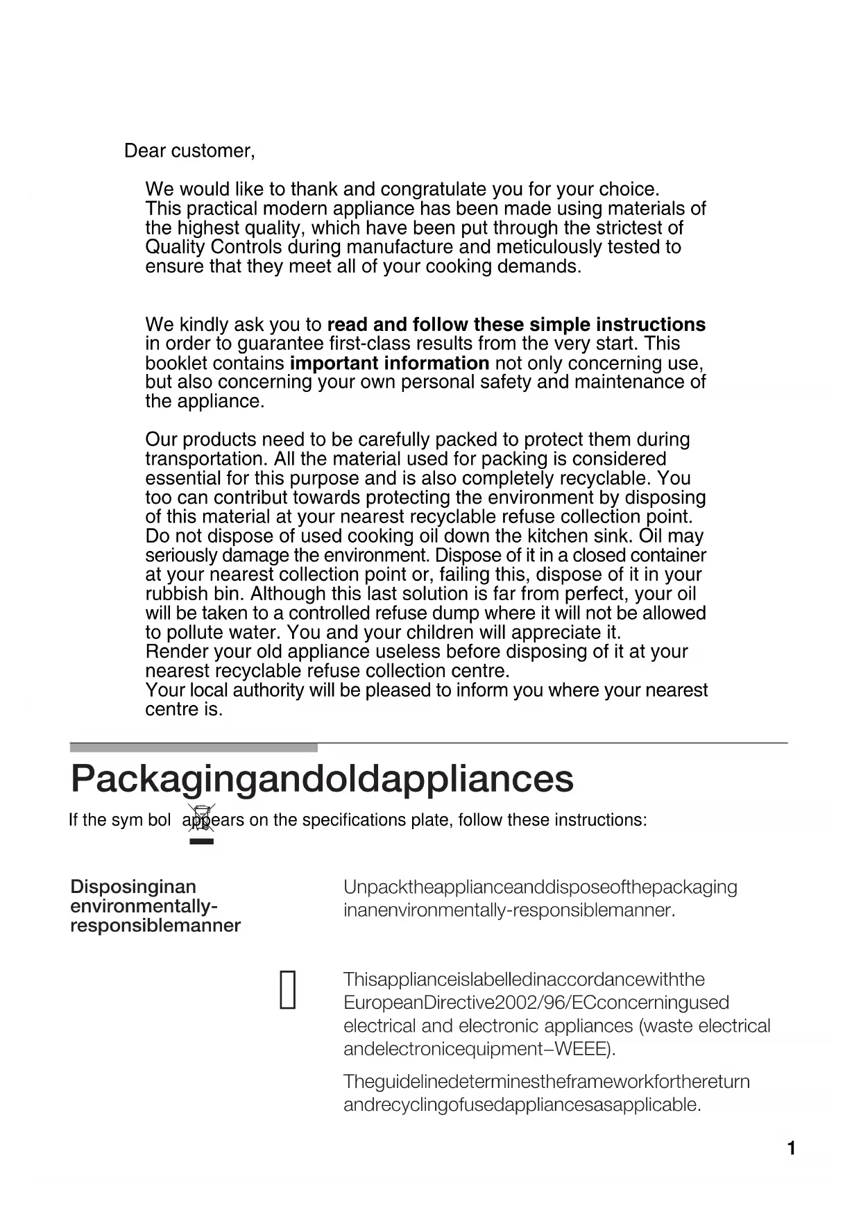 8,10 kW (Hs) 99BM749 99BM749 CM17451Dear customer, We would like to thank and congratulate you for your choice. This practical modern appliance has been made using materials of the highest quality, which have been put through the strictest of Quality Controls during manufacture and meticulously tested to We kindly ask you to read and follow these simple instructions in order to guarantee first-class results from the very start. This booklet contains important information not only concerning use, but also concerning your own personal safety and maintenance of the appliance. Our products need to be carefully packed to protect them during transportation. All the material used for packing is considered essential for this purpose and is also completely recyclable. You too can contribut towards protecting the environment by disposing of this material at your nearest recyclable refuse collection point. Do not dispose of used cooking oil down the kitchen sink. Oil may seriously damage the environment. Dispose of it in a closed container at your nearest collection point or, failing this, dispose of it in your rubbish bin. Although this last solution is far from perfect, your oil will be taken to a controlled refuse dump where it will not be allowed to pollute water. You and your children will appreciate it. Render your old appliance useless before disposing of it at your nearest recyclable refuse collection centre. Your local authority will be pleased to inform you where your nearest centre is.