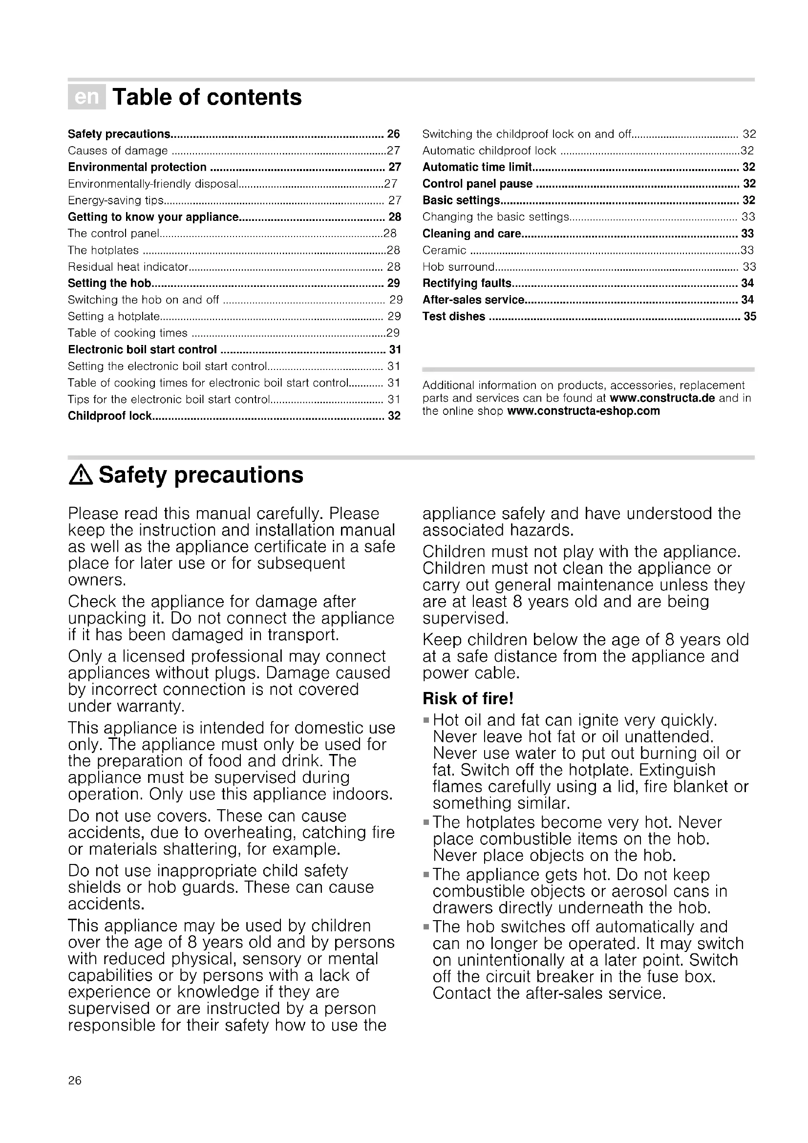 CA328352 - Cooker CONSTRUCTA - Free user manual and instructions