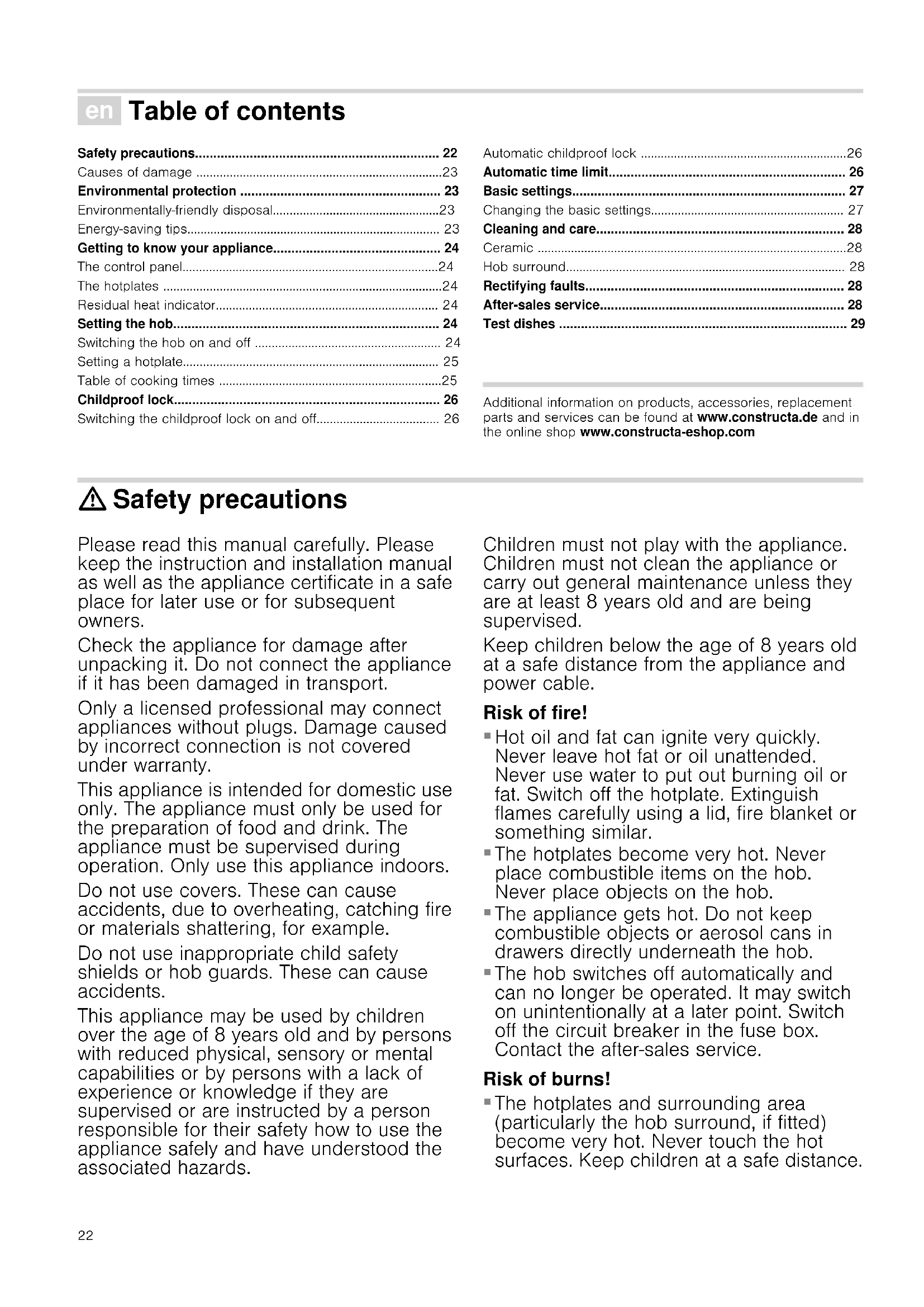 CA322352 - Cooker CONSTRUCTA - Free user manual and instructions