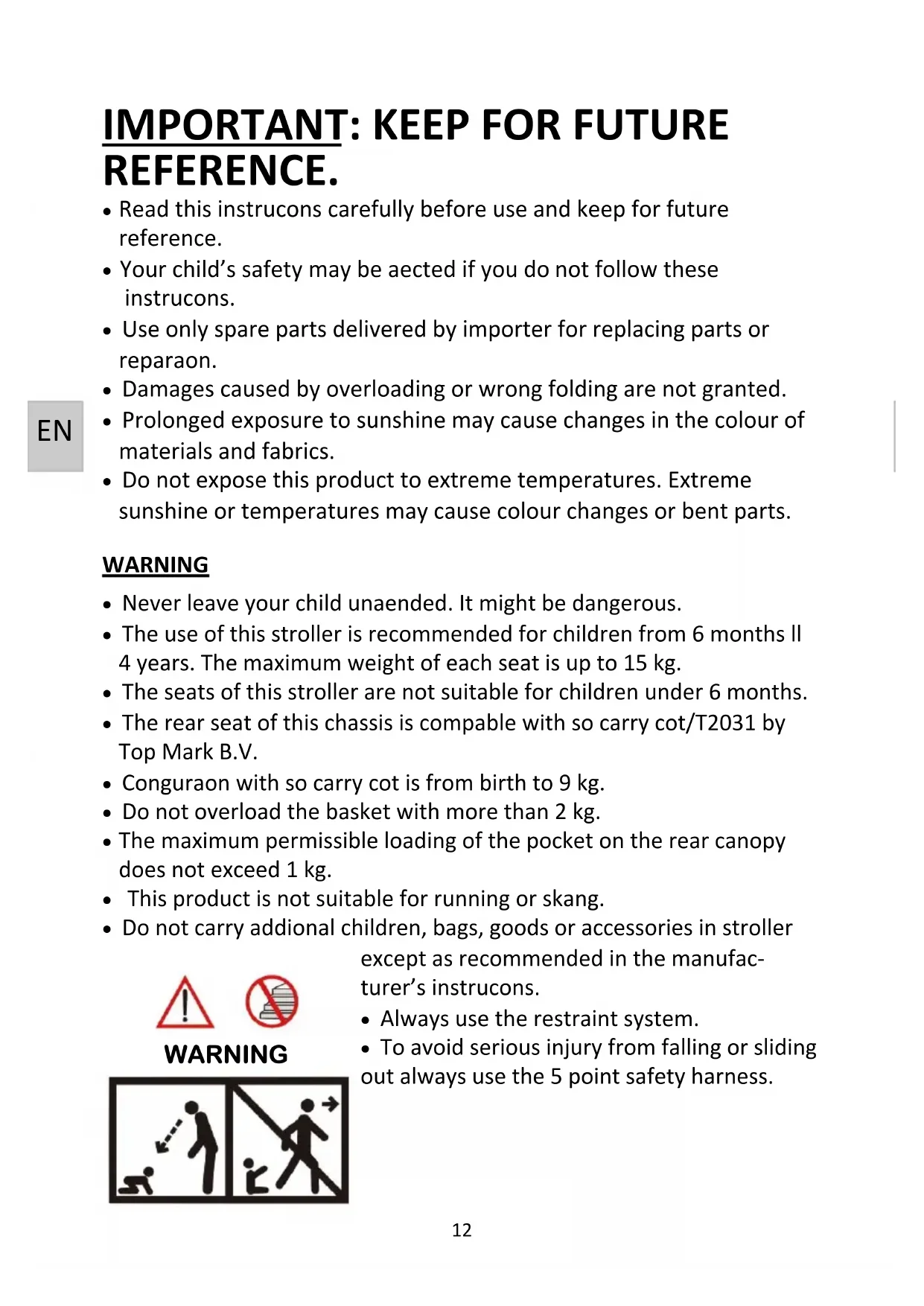 - Any load aached to the handle aects the stability of the stroller, the stroller may become unstable and p over and can injure your child.