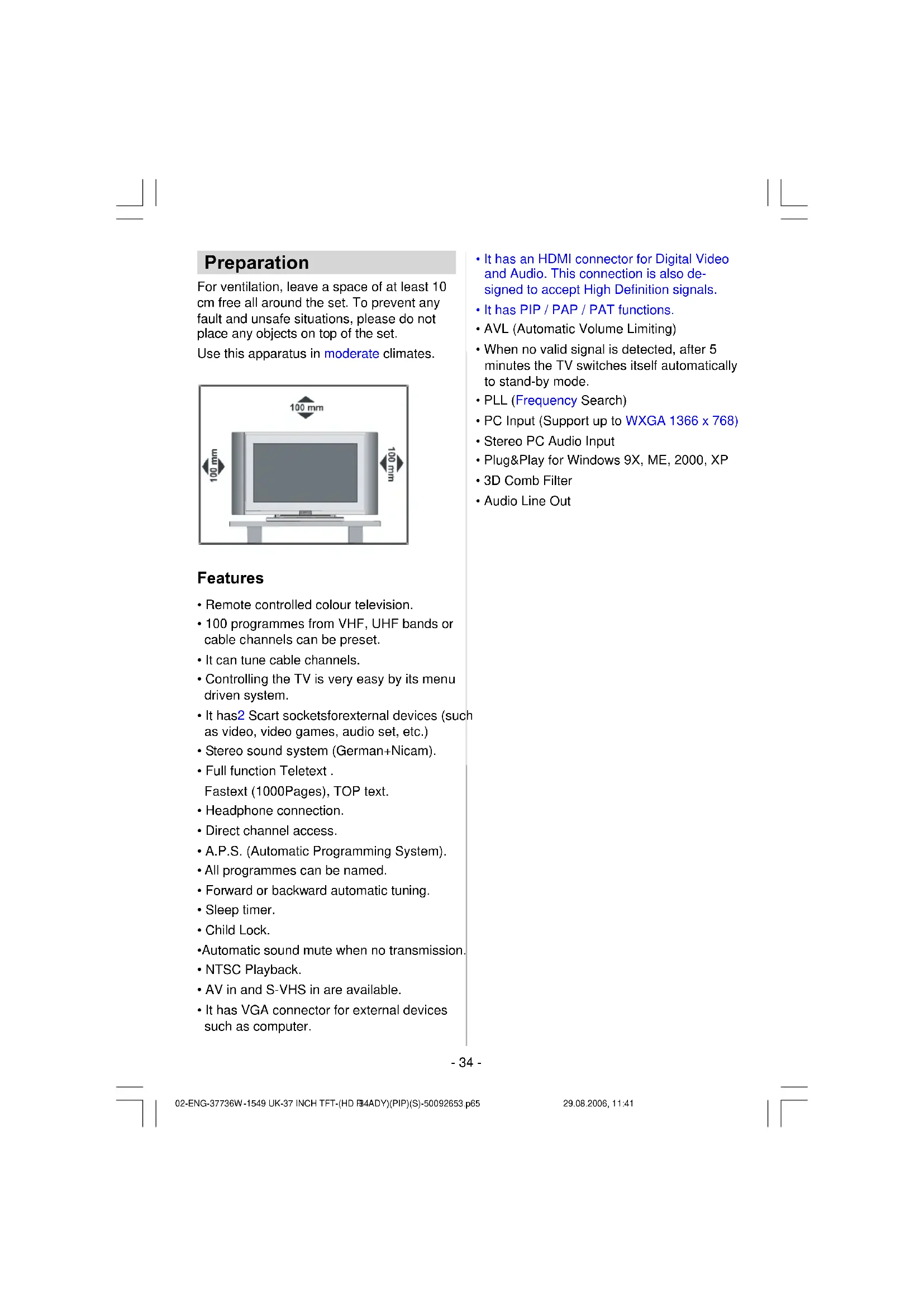 - Audio Line Out 02-ENG-37736W-1549 UK-37 INCH TFT-(HD READY)(PIP)(S)-50092653.p65 29.08.2006, 11:4134- 35 - SafetyPrecautions Please read the following recommended safety precautions carefully for your safety