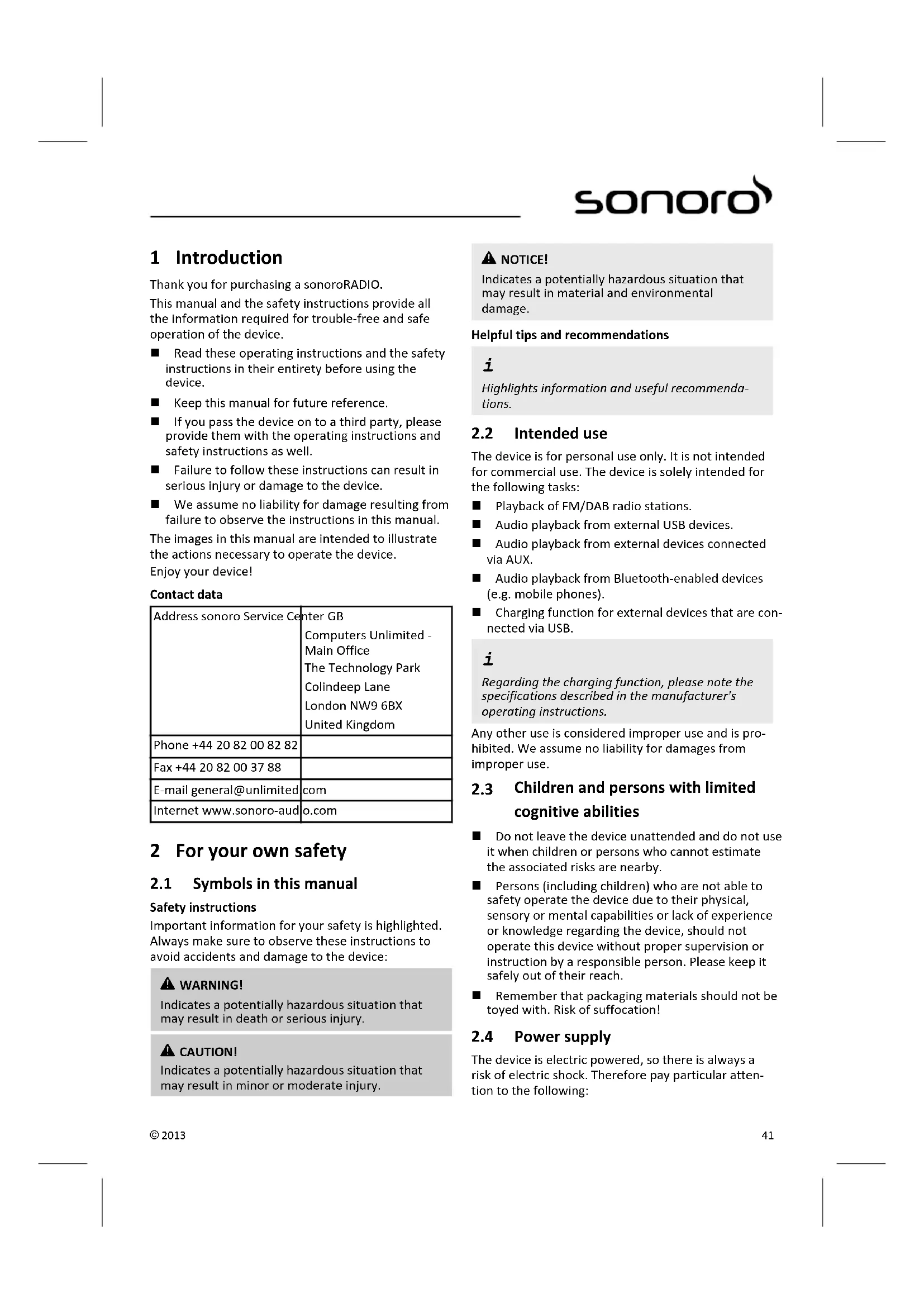 In case of a complaint, please contact our customer service department. You can find contact details ( 'Contact data' on page 41) or at www.sonoro-audio.com.