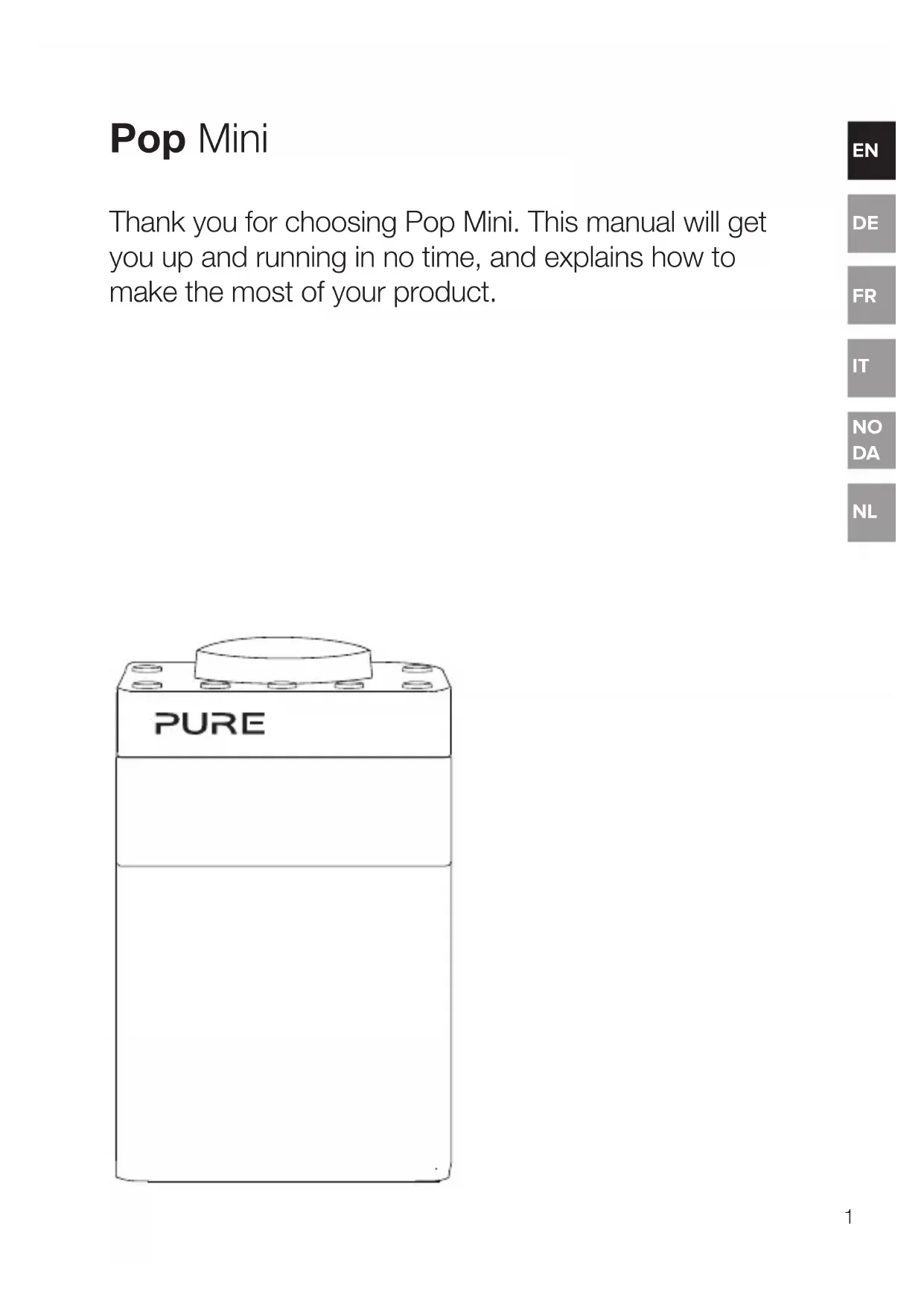 Pop Mini Thank you for choosing Pop Mini. This manual will get you up and running in no time, and explains how to make the most of your product.