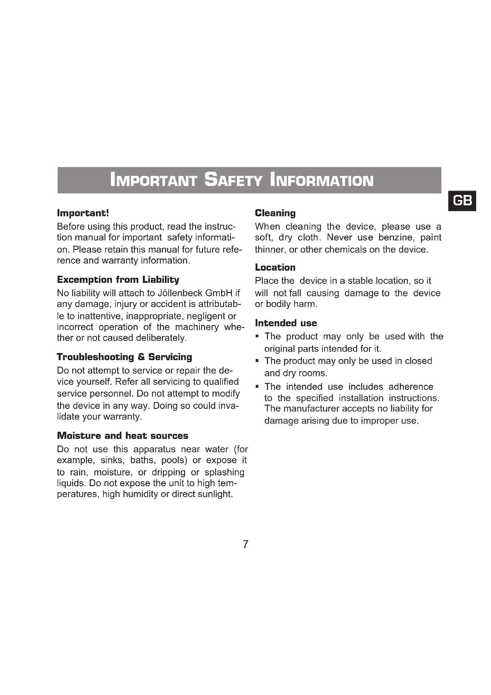 No liability will attach to Jollenbeck GmbH if any damage, injury or accident is attributable to inattentive, inappropriate, negligent or incorrect operation of the machinery whether or not caused deliberately.