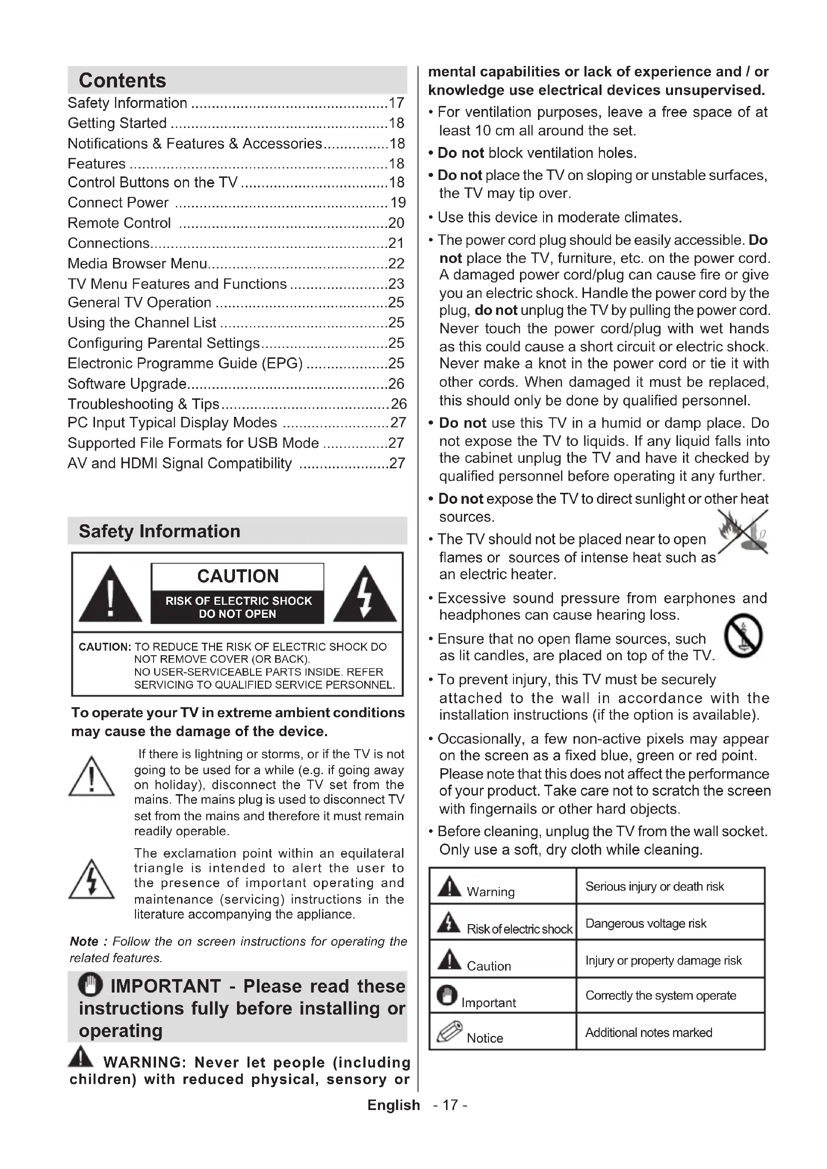 To operate your TV in extreme ambient conditions may cause the damage of the device.