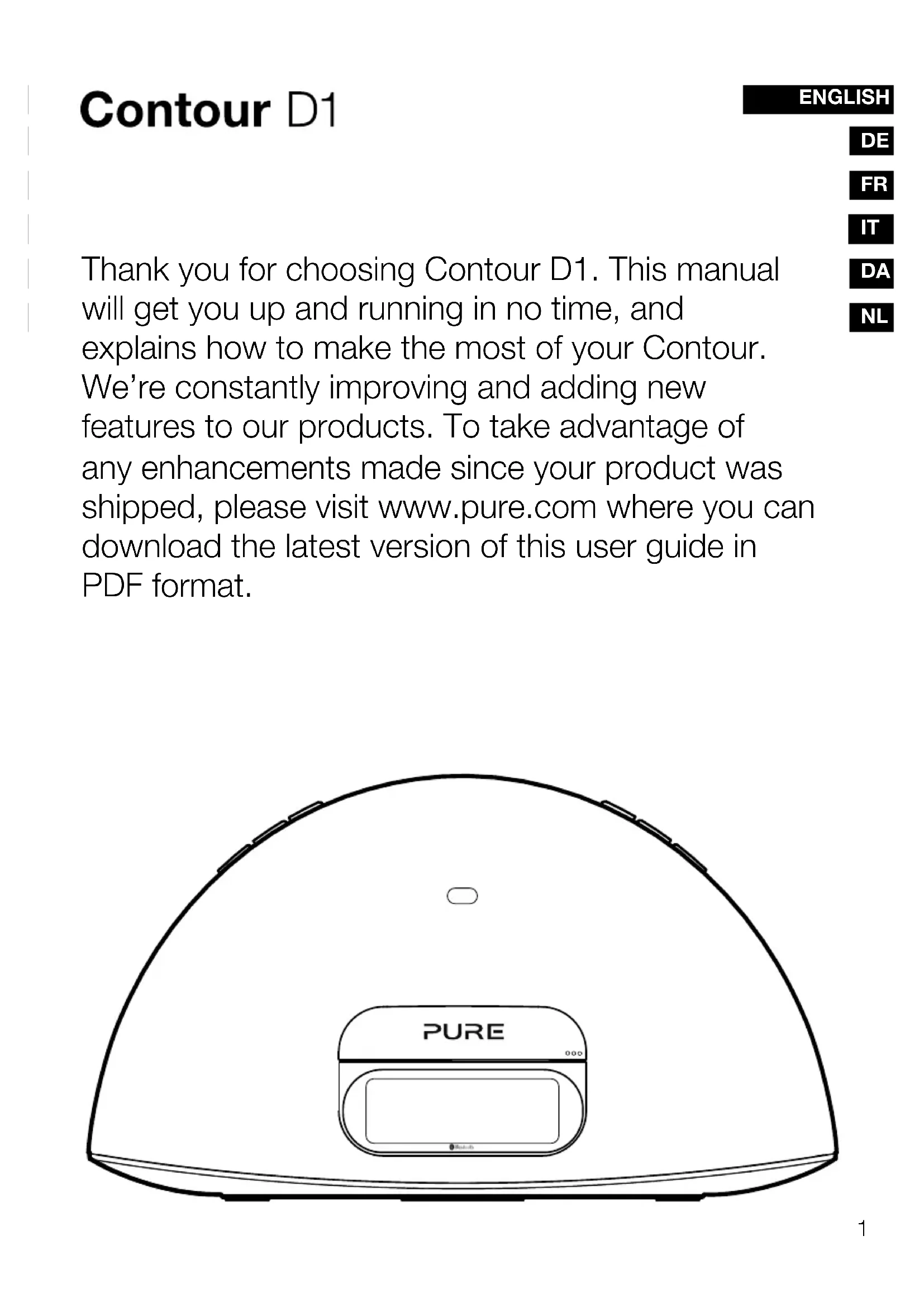 Download the instructions for your Speaker in PDF format for free! Find your manual Contour D1 - PURE and take your electronic device back in hand. On this page are published all the documents necessary for the use of your device. Contour D1 by PURE.