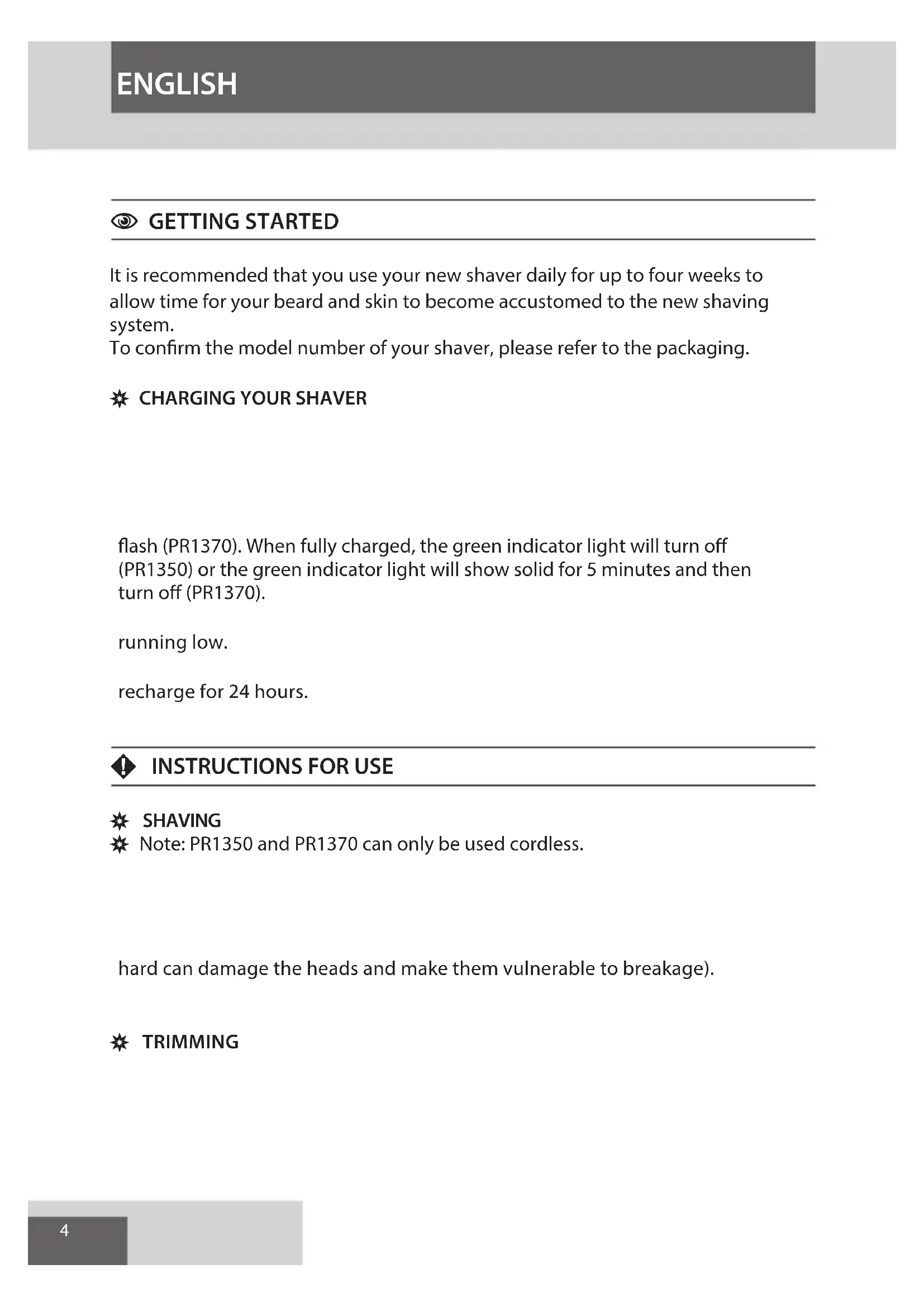 To confirm the model number of your shaver, please refer to the packaging.