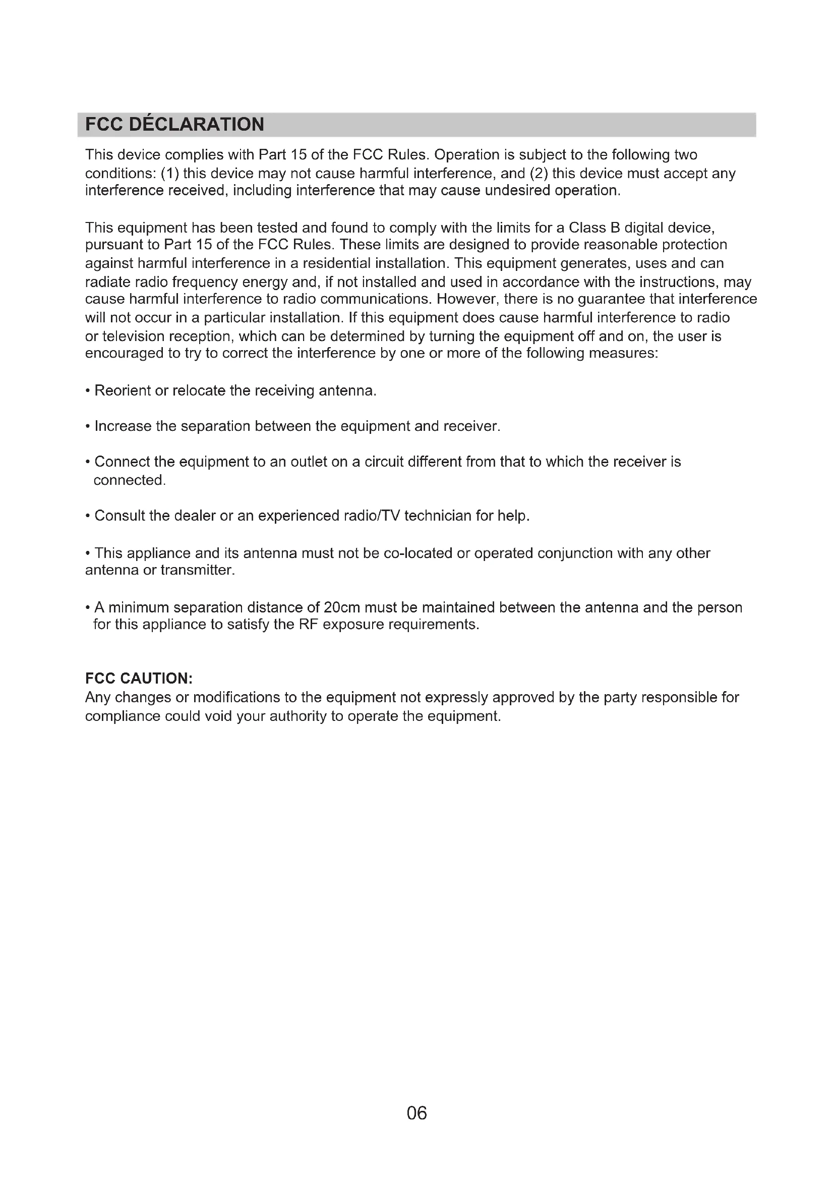 - This appliance and its antenna must not be co-located or operated conjunction with any other antenna or transmitter.