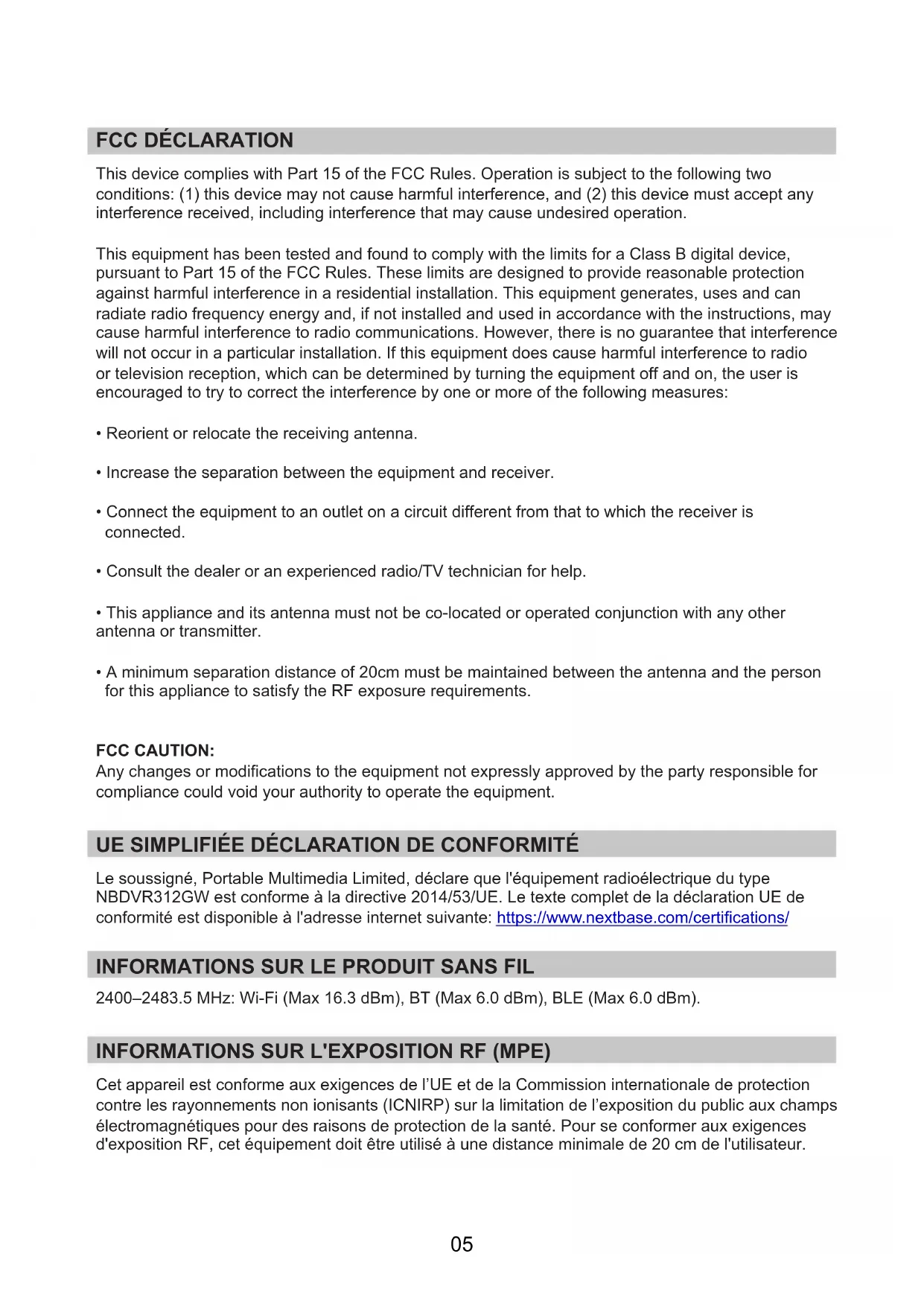 Company Name: Portable Multimedia Ltd Mailing Address : Unit 2, Caerphilly Business Park, Van Road, Caerphilly. CF83 3ED. UK Contact person : Graham Lambert Signature: Email Address : support@nextbase.com Tel : +44 02920 866429 Date : 12th June 2018