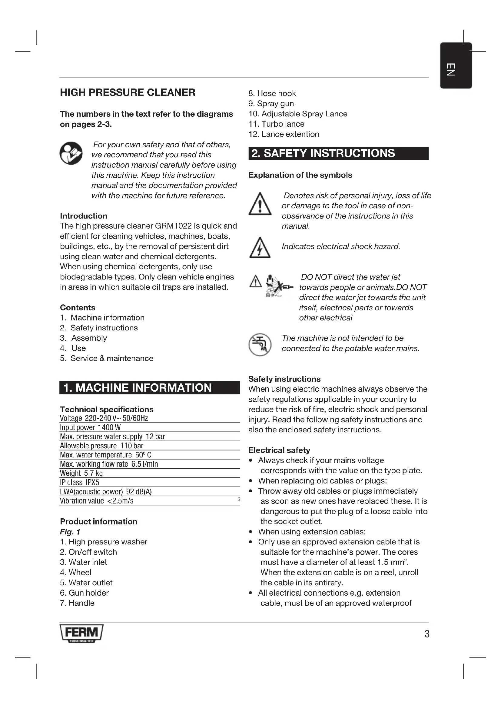 GRM1022 - Pressure washer Ferm - Free user manual and instructions
