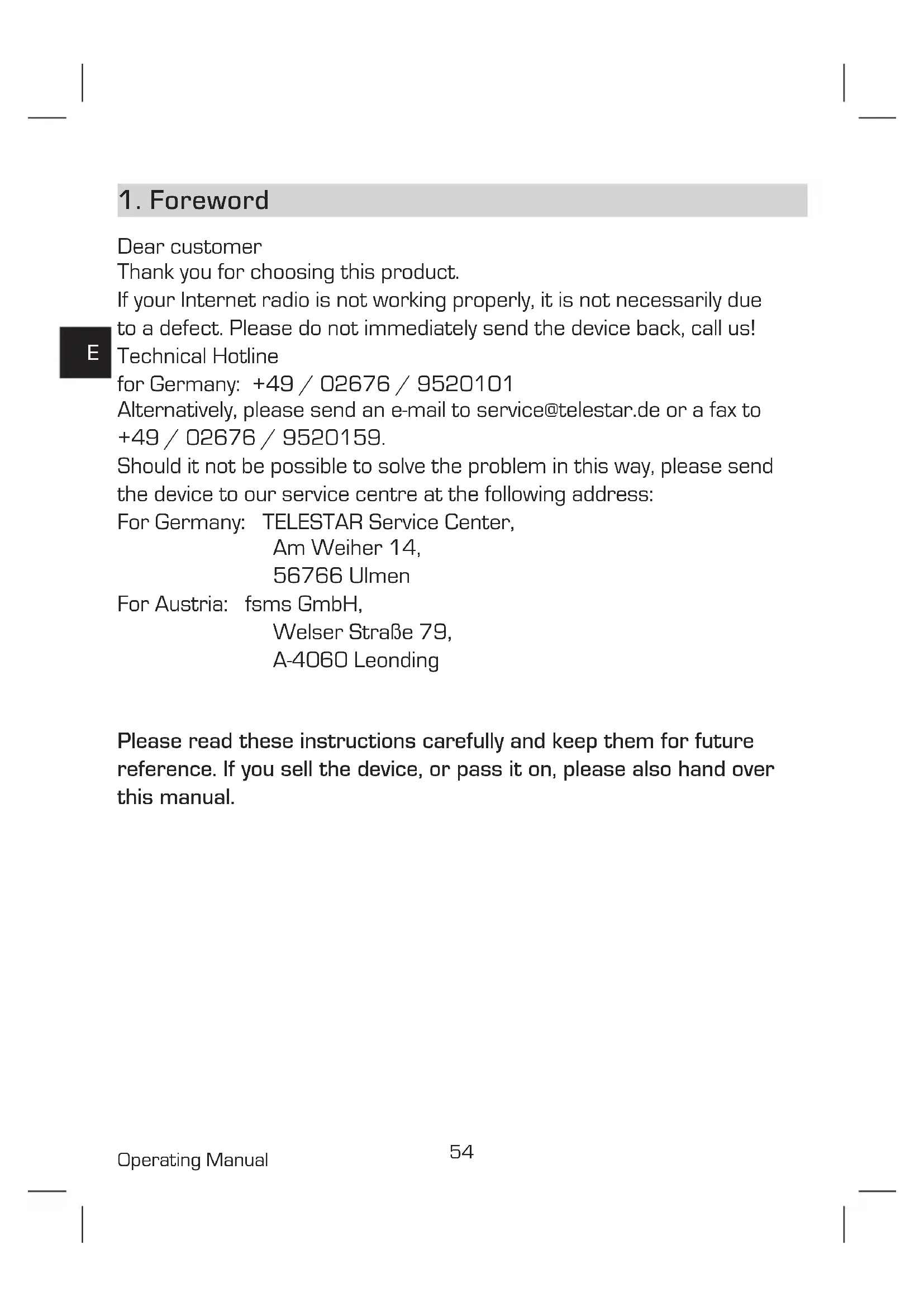 For Germany: TELESTAR Service Center,
