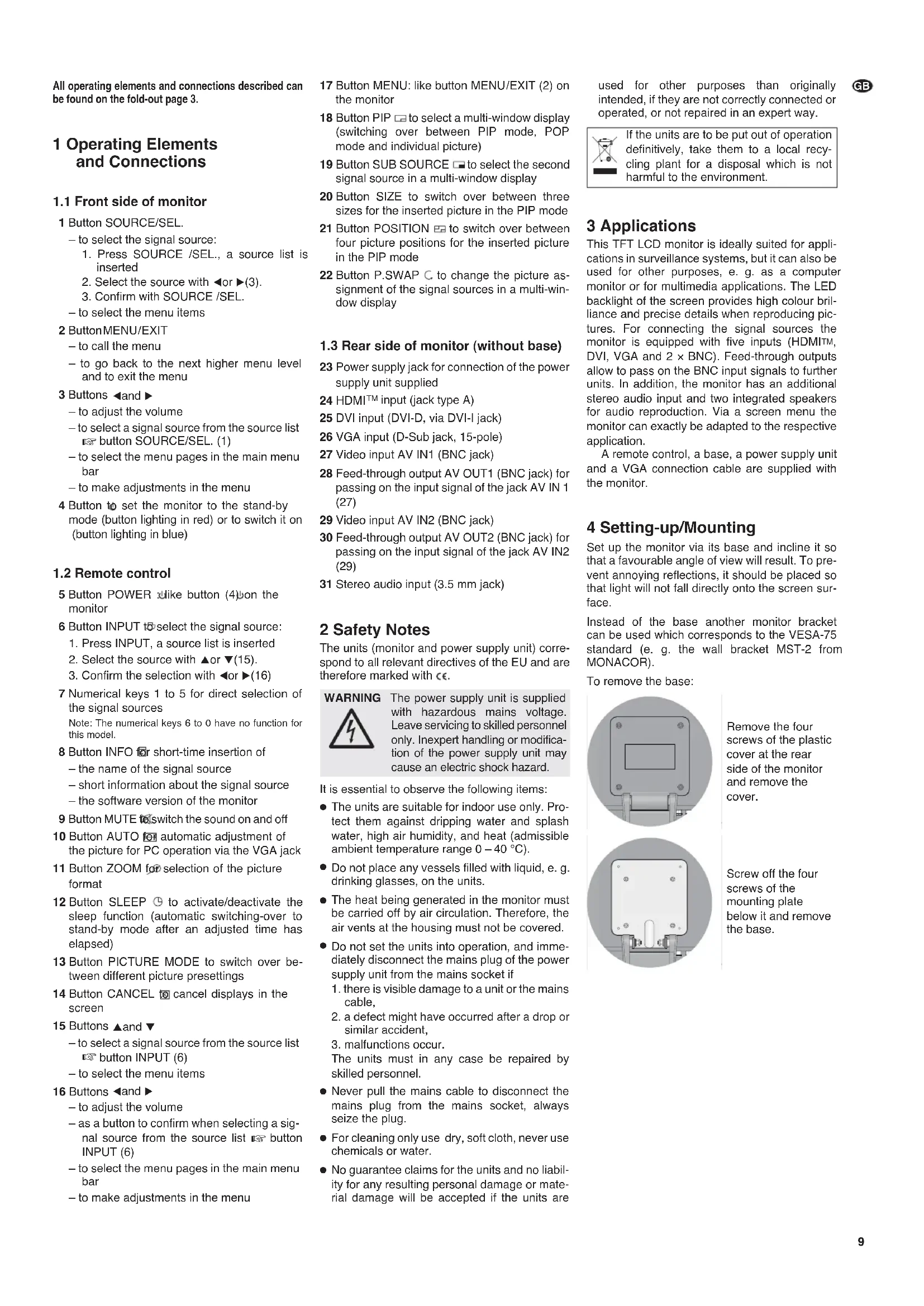 Download the instructions for your Monitor in PDF format for free! Find your manual TFT1900LED - Monacor and take your electronic device back in hand. On this page are published all the documents necessary for the use of your device. TFT1900LED by Monacor.