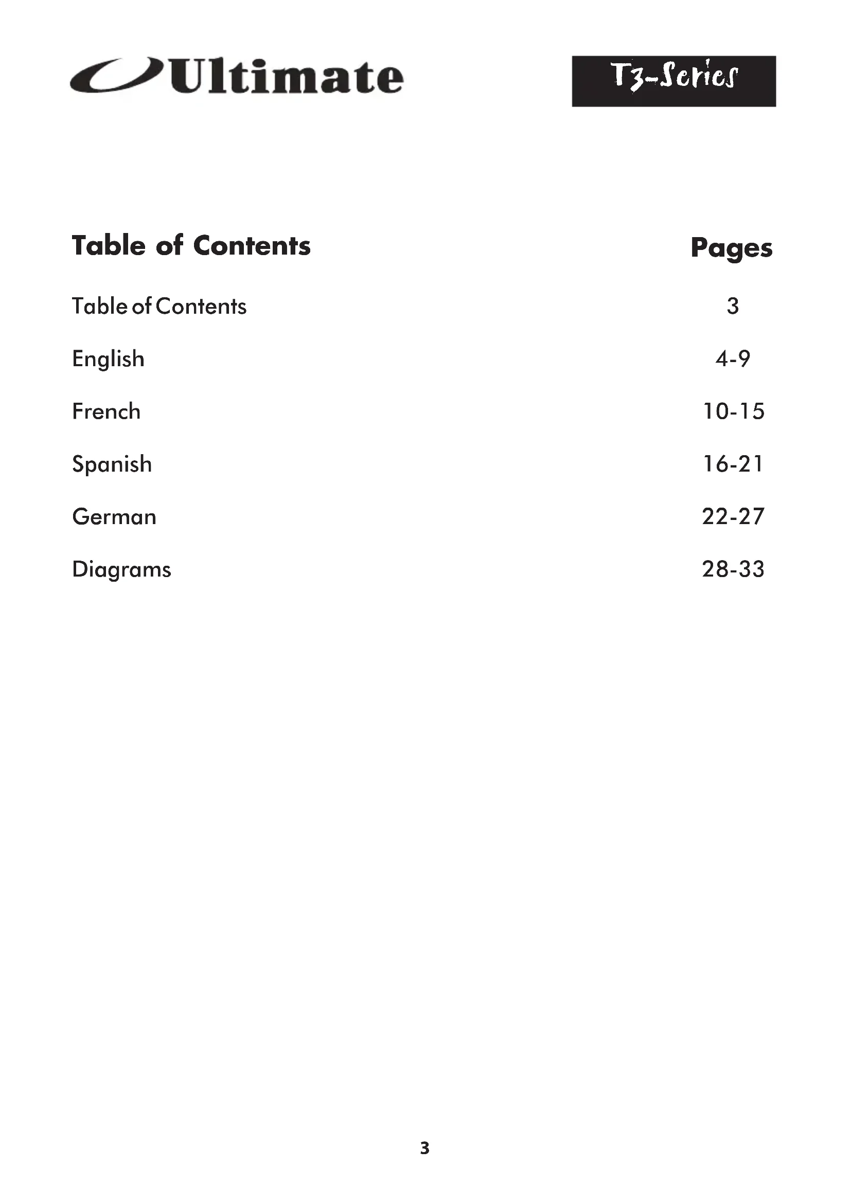 2Table of Contents English French Spanish German Diagrams Table of Contents