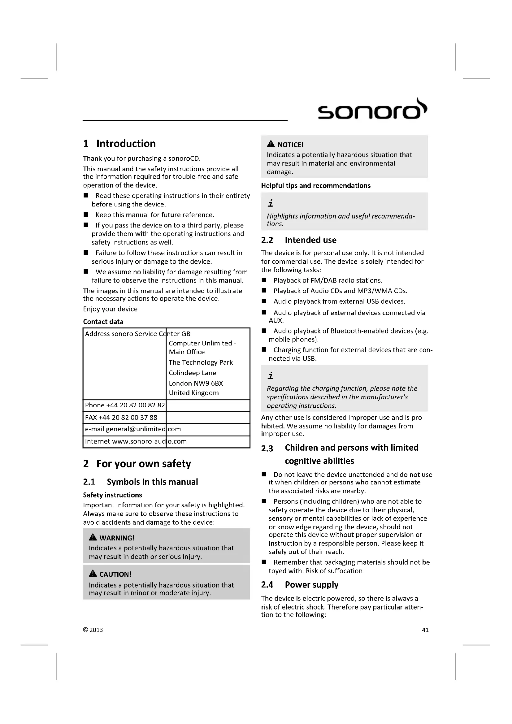 In case of a complaint, please contact our customer service department. You can find contact details ( Contact data' on page 41) or at www.sonoro-audio.com.