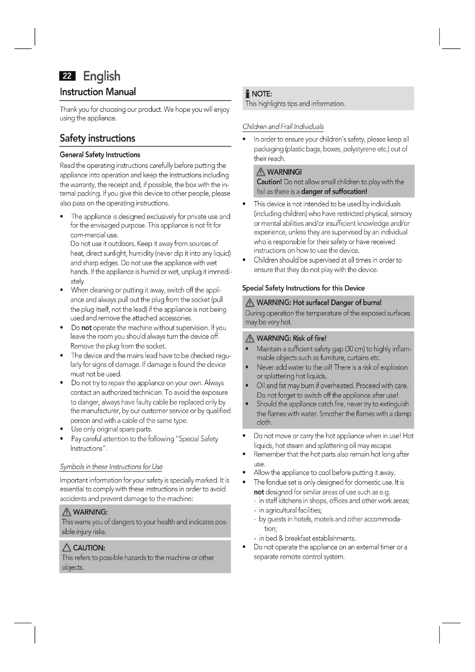 - Thefonduesetisonlydesignedfordomesticuse.Itis not designed for similar areas of use such as e.g. - in staff kitchens in shops, offices and other work areas; - in agricultural facilities; - by guests in hotels, motels and other accommoda- tion; - in bed & breakfast establishments.