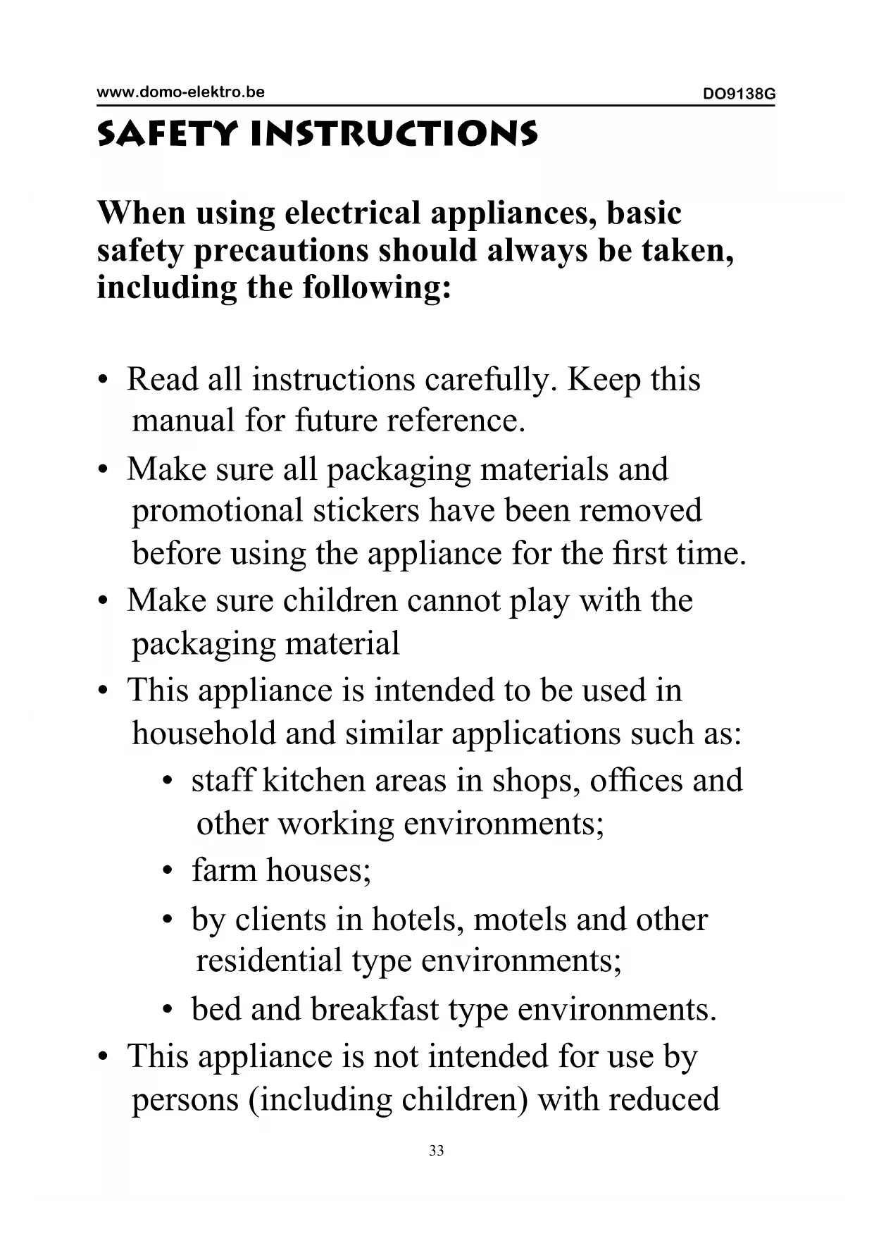 USER MANUAL DO9138G DOMO