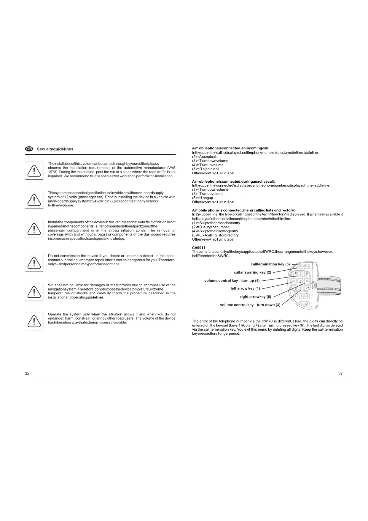 Thisssystemhasbeendesignedfortheuseinvehicleswithanon-boardsupply system of 12 volts (passenger car). Prior to installing the device in a vehicle with anon-boardsupplysystemof24volt(truck),pleasecontactinycaseour hotlinebyphone.