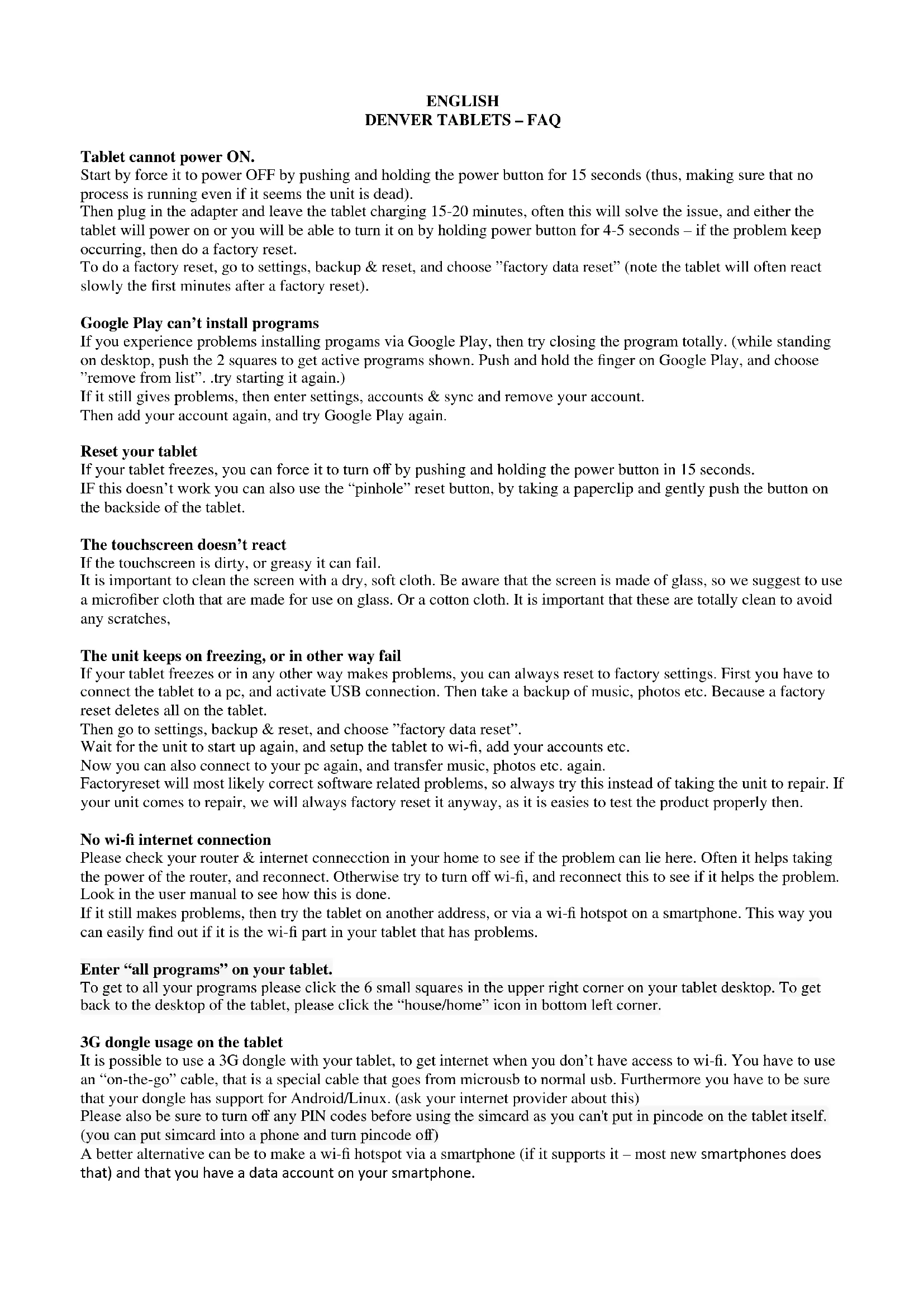 TAC70112 - Tablet DENVER - Free user manual and instructions