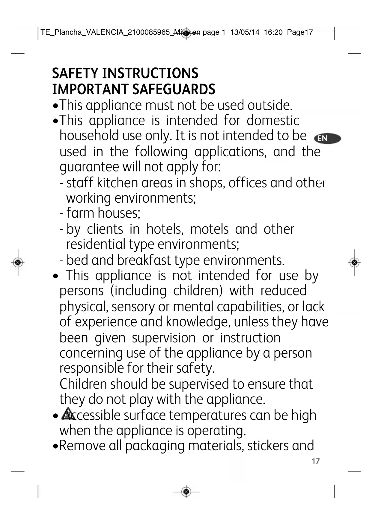 TE_Plancha_VALENCIA_2100085965_Mise en page 1 13/05/14 16:20 Page17accessories from the inside and the outside of the appliance.