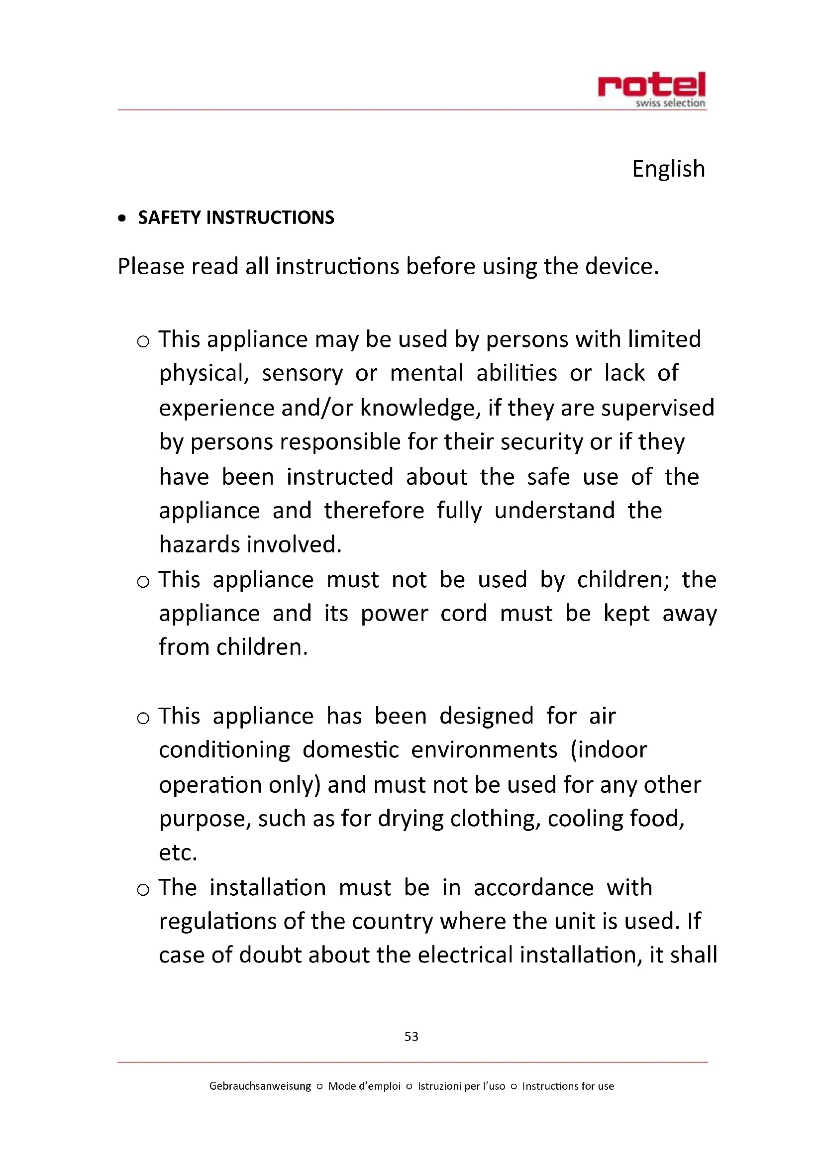 This appliance may be used by persons with limited physical, sensory or mental abilities or lack of experience and/or knowledge, if they are supervised by persons responsible for their security or if they have been instructed about the safe use of the appliance and therefore fully understand the hazards involved.